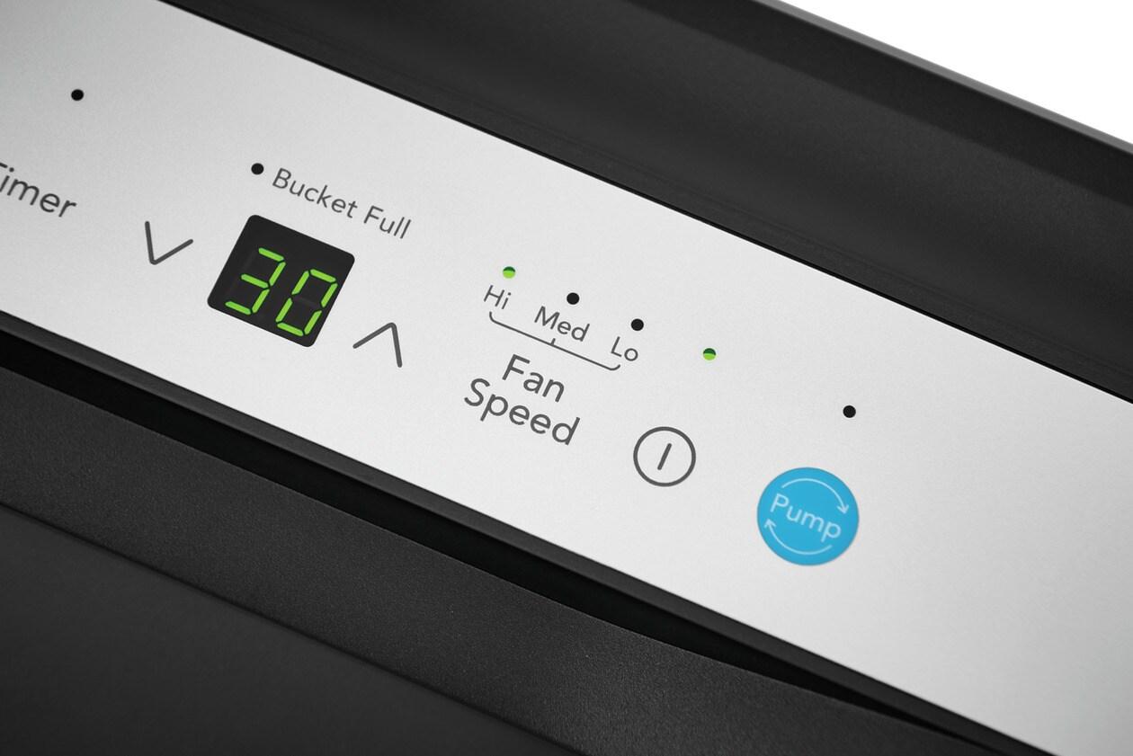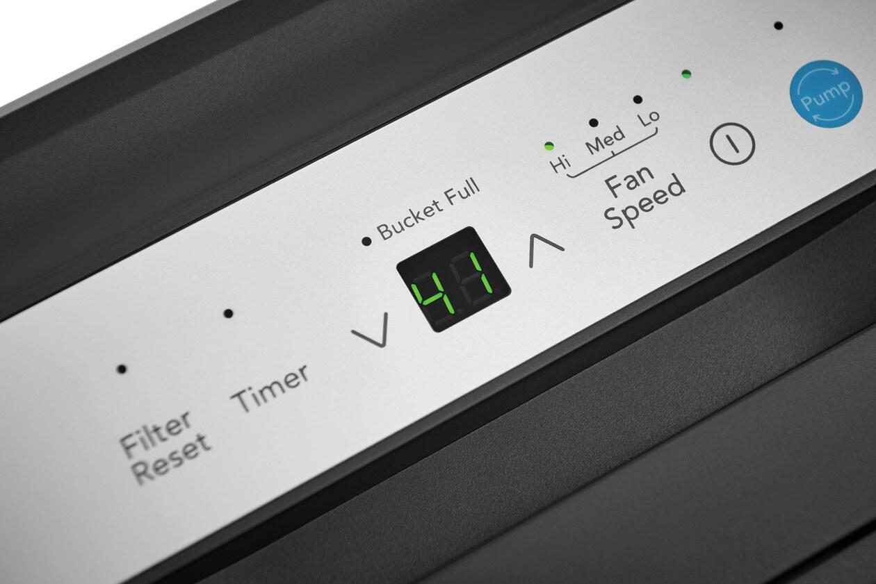 The Frigidaire 50 Pint Dehumidifier with Built-In Pump saves you time and energy normally spent manually emptying a water bucket by allowing the unit to discharge moisture in an upward direction, either into a sink or out of a window. Capture dust from the air and keep your dehumidifier working efficiently with our easy-to-clean washable filter. Front loading bucket with carrying handle and splash guard makes cleaning hassle-free.