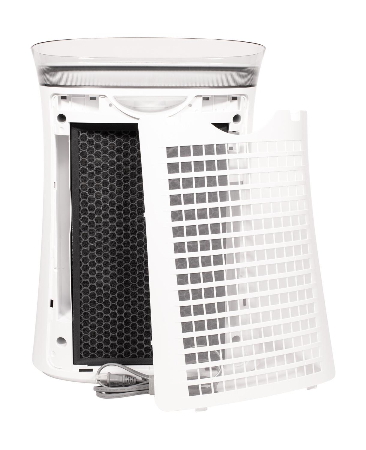 The triple filtration system helps clean the air that passes through the filters in three ways. The washable, microscreen pre-filter traps dust and other large airborne particles. The activated carbon deodorizing filter helps reduce some common household odors. Finally, the True HEPA filter effectively captures 99.97% of particles from the air that passes through the filter from 0.3 microns and larger.