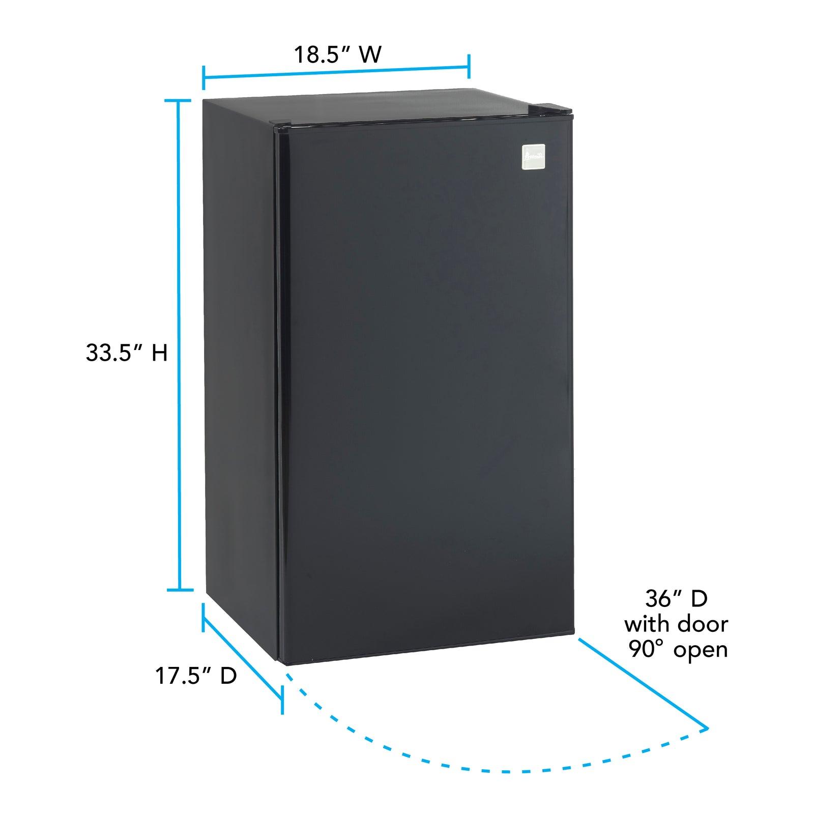 Keep your snacks and favorite beverages close by in the 3.2 cubic foot refrigerator from Avanti. The perfect mini fridge for the office, dorm, man cave, she-shed, bar, bedroom, or anywhere you need a little extra refrigerator space. The adjustable door bins can accommodate 2-liter bottles as well as other drinks and condiments. Use the adjustable glass shelves to arrange salads, fruits, snacks, and other food for easy access throughout the day. This fridge features manual defrost, so your food and beverages remain fresh and cold. Select the right settings for your items with the full range temperature control.