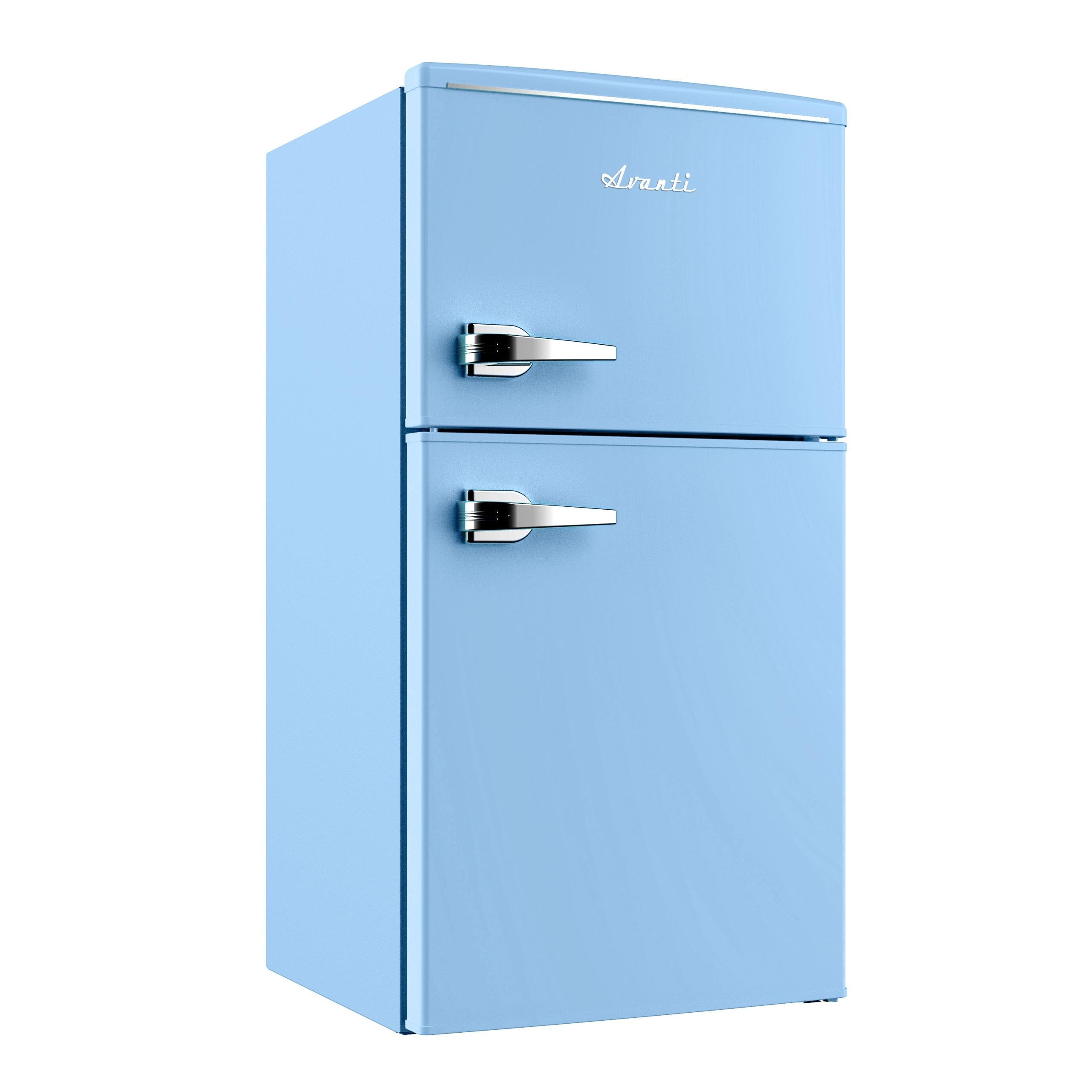 This retro-inspired compact refrigerator combines vintage charm with modern functionality, delivering a cool, colorful, and sophisticated aesthetic that enhances any setting. With a capacity of 3.0 cubic feet, this double-door freezer/refrigerator is the perfect space-saving solution for your home, dorm room, office, or recreational area. Its thoughtful design ensures that your favorite foods and beverages are always within reach, making it an ideal addition to small spaces where style and practicality matter most. The double-door design offers convenient access to all your essentials. The top freezer section provides ample space for storing frozen foods in bulk, helping you save money by reducing trips to the store. Meanwhile, the refrigerator section is designed to keep salads, fruits, snacks, and beverages fresh and easily accessible throughout the day. The manual defrost system allows you to maintain optimal cooling performance with minimal effort, giving you full control over the unit's temperature settings. Storage is made simple with built-in door shelves and a beverage can dispenser. The door design accommodates a variety of items, including two-liter bottles, assorted condiments, and up to six 12-ounce cans, ensuring that your fridge stays organized and functional. Inside, two adjustable and removable glass shelves provide versatility in food storage, allowing you to customize the layout to suit your needs. These glass shelves are easy to clean and provide a clear view of your food items for added convenience. The fridge is equipped with mechanical temperature controls, allowing you to adjust the cooling settings quickly and easily with the turn of a dial. This feature ensures that your food and beverages are stored at the perfect temperature for maximum freshness. The retro-inspired exterior design adds a chic and timeless touch, making this compact fridge not only a practical appliance but also a stylish focal point in any room. Backed by Avanti's 1-year manufacturer-limited warranty, this refrigerator offers reliability and peace of mind. Whether you re looking to enhance your kitchen, upgrade your dorm, or add convenience to your office space, this compact fridge delivers on all fronts. Its combination of retro style, modern features, and compact efficiency makes it a standout choice for those who value both form and function.