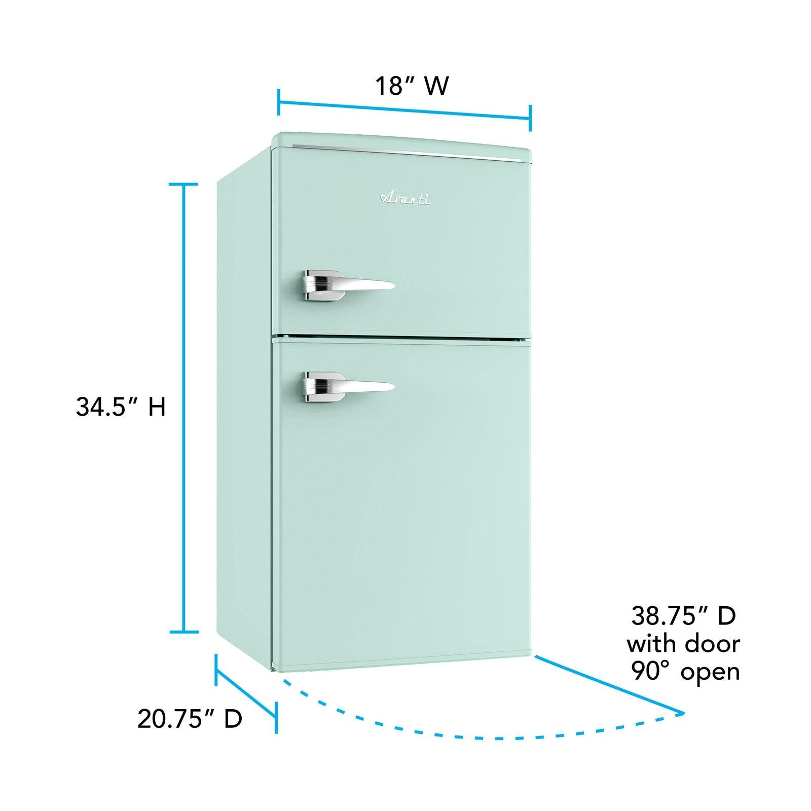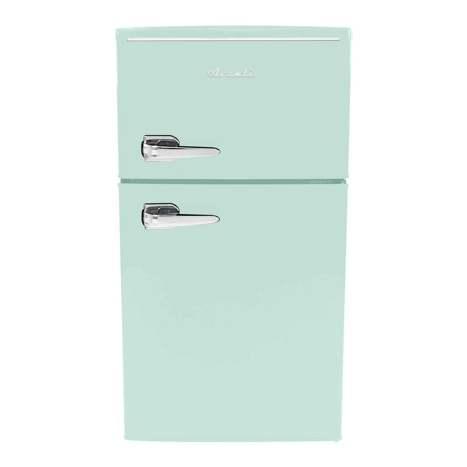 This retro-inspired compact refrigerator combines vintage charm with modern functionality, delivering a cool, colorful, and sophisticated aesthetic that enhances any setting. With a capacity of 3.0 cubic feet, this double-door freezer/refrigerator is the perfect space-saving solution for your home, dorm room, office, or recreational area. Its thoughtful design ensures that your favorite foods and beverages are always within reach, making it an ideal addition to small spaces where style and practicality matter most. The double-door design offers convenient access to all your essentials. The top freezer section provides ample space for storing frozen foods in bulk, helping you save money by reducing trips to the store. Meanwhile, the refrigerator section is designed to keep salads, fruits, snacks, and beverages fresh and easily accessible throughout the day. The manual defrost system allows you to maintain optimal cooling performance with minimal effort, giving you full control over the unit's temperature settings. Storage is made simple with built-in door shelves and a beverage can dispenser. The door design accommodates a variety of items, including two-liter bottles, assorted condiments, and up to six 12-ounce cans, ensuring that your fridge stays organized and functional. Inside, two adjustable and removable glass shelves provide versatility in food storage, allowing you to customize the layout to suit your needs. These glass shelves are easy to clean and provide a clear view of your food items for added convenience. The fridge is equipped with mechanical temperature controls, allowing you to adjust the cooling settings quickly and easily with the turn of a dial. This feature ensures that your food and beverages are stored at the perfect temperature for maximum freshness. The retro-inspired exterior design adds a chic and timeless touch, making this compact fridge not only a practical appliance but also a stylish focal point in any room. Backed by Avanti's 1-year manufacturer-limited warranty, this refrigerator offers reliability and peace of mind. Whether you re looking to enhance your kitchen, upgrade your dorm, or add convenience to your office space, this compact fridge delivers on all fronts. Its combination of retro style, modern features, and compact efficiency makes it a standout choice for those who value both form and function.