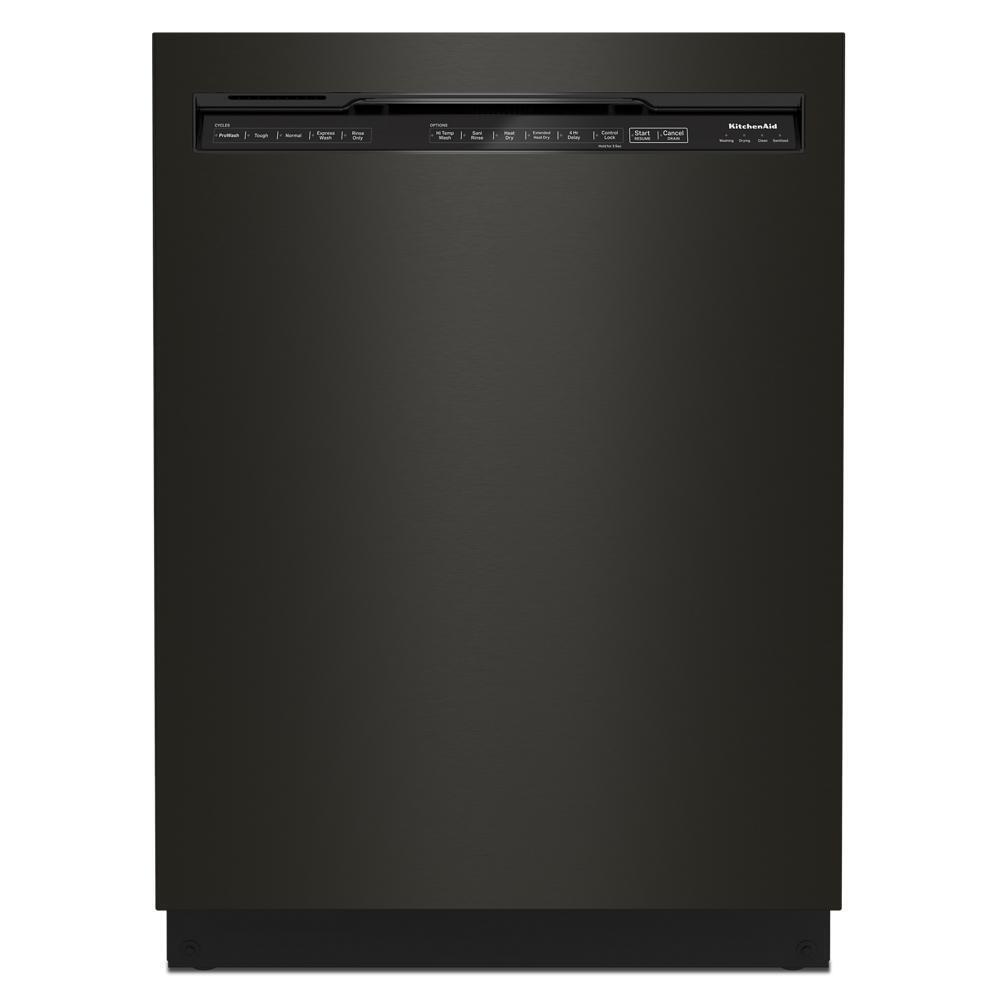 The KitchenAid KDFM404KBS 44 dBA Top Control Built-In Dishwasher delivers exceptional performance and capacity with a refined, premium look. Featuring the innovative FreeFlex™ Third Rack, it provides a deep, angled design to fit 6" glasses, bowls, and silverware, maximizing cleaning space. The Advanced Clean Water Wash System continuously removes food particles from the water to ensure spotless results without pre-rinsing. ProWash™ Cycle adapts washing intensity in real-time for optimal cleaning efficiency. Operating at an ultra-quiet 44 dBA, it ensures minimal disruption during use. The PrintShield™ Black Stainless Steel finish resists smudges and fingerprints for easy cleaning and a sophisticated appearance. With adjustable racks, targeted spray jets, and a durable stainless steel interior, this dishwasher provides flexibility and durability for everyday use.