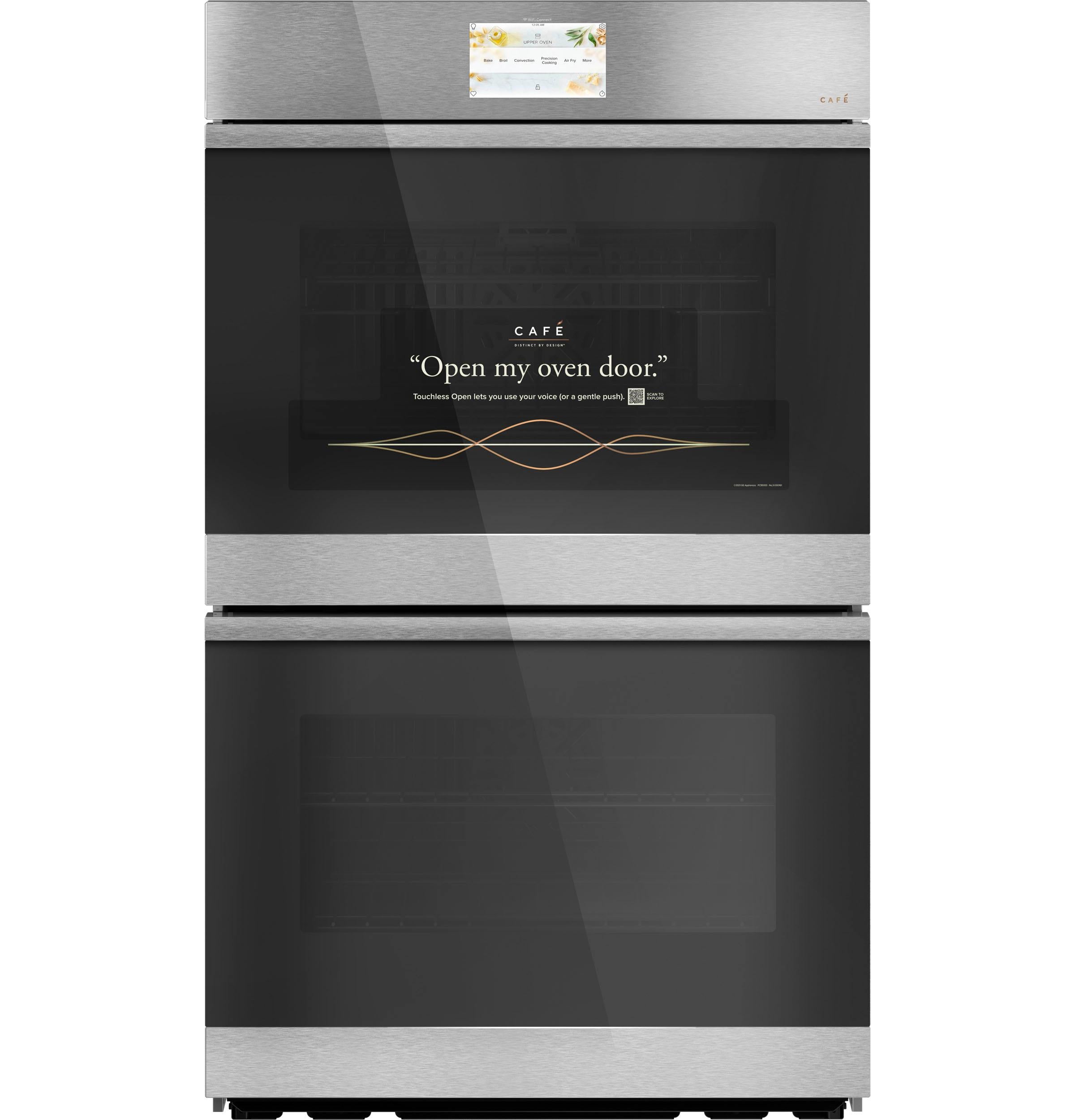 The Café CTD90DM2NS5 30-inch smart double wall oven combines advanced cooking technology with a stunning Platinum Glass finish, creating a statement piece for any contemporary kitchen. Equipped with True European Convection with Direct Air, this oven ensures even baking, roasting, and broiling by circulating heat throughout both cavities.