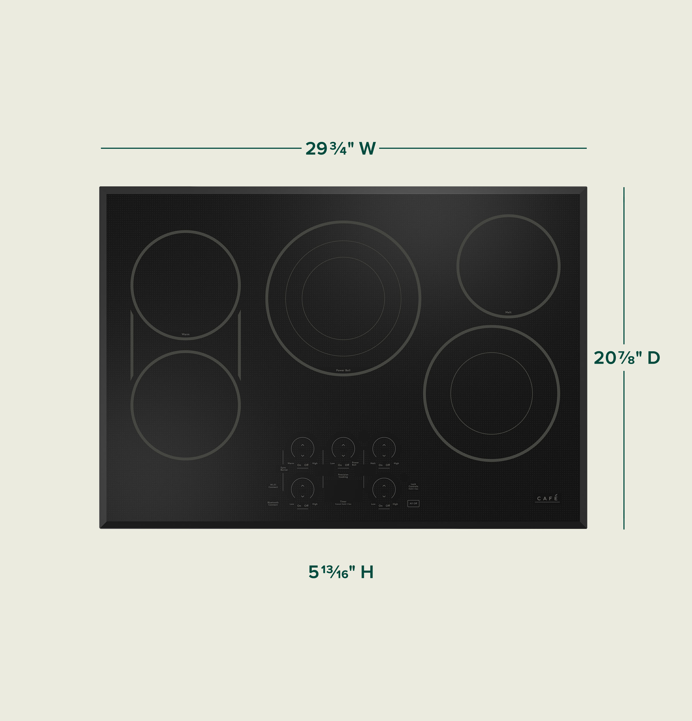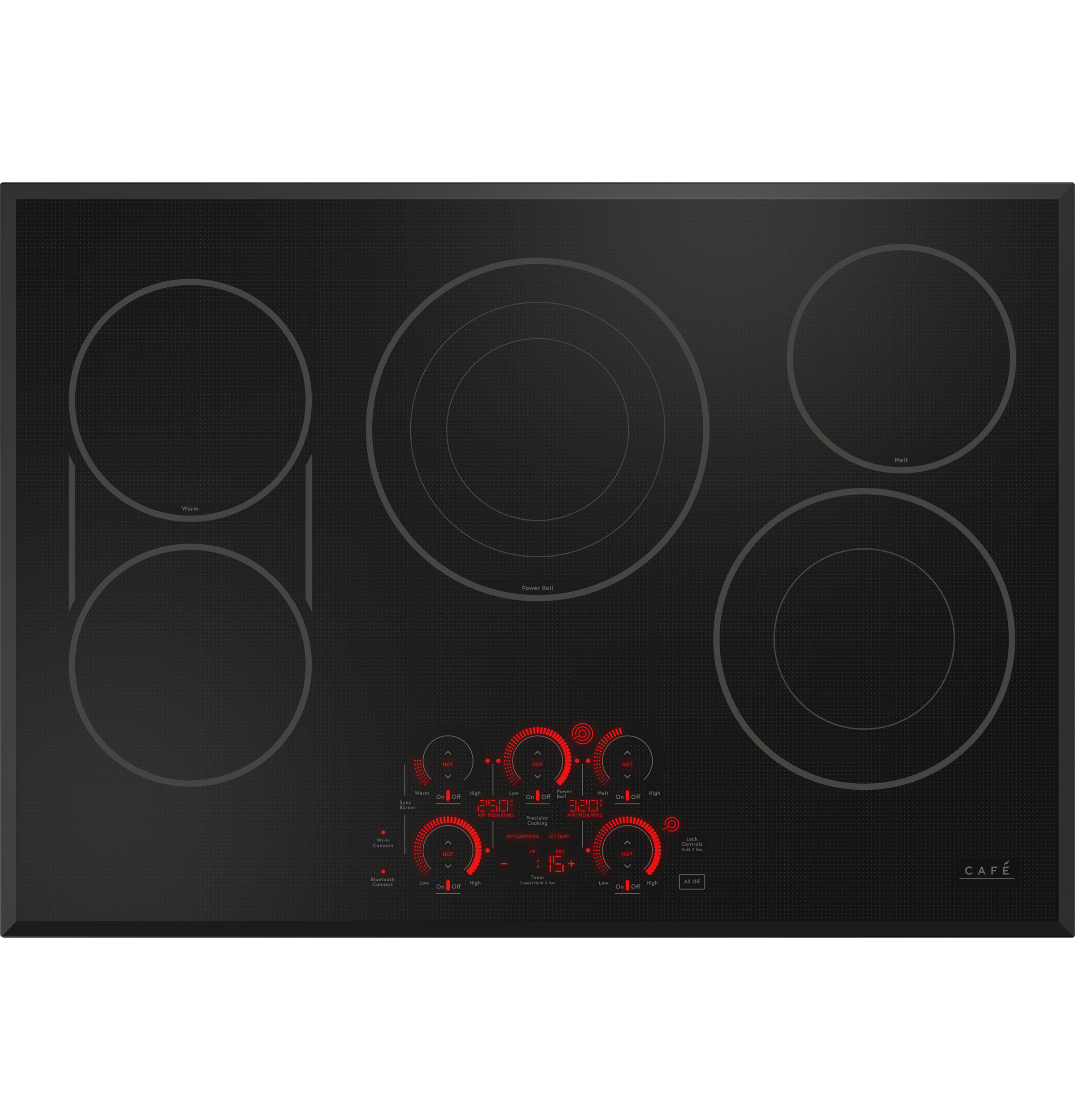 The Café CEP90301TBB 30" Smart Touch-Control Electric Cooktop is a high-performance appliance designed for modern, high-end kitchens. Its smooth glass surface with touch controls offers a sleek, seamless appearance while allowing for precise heat adjustments.