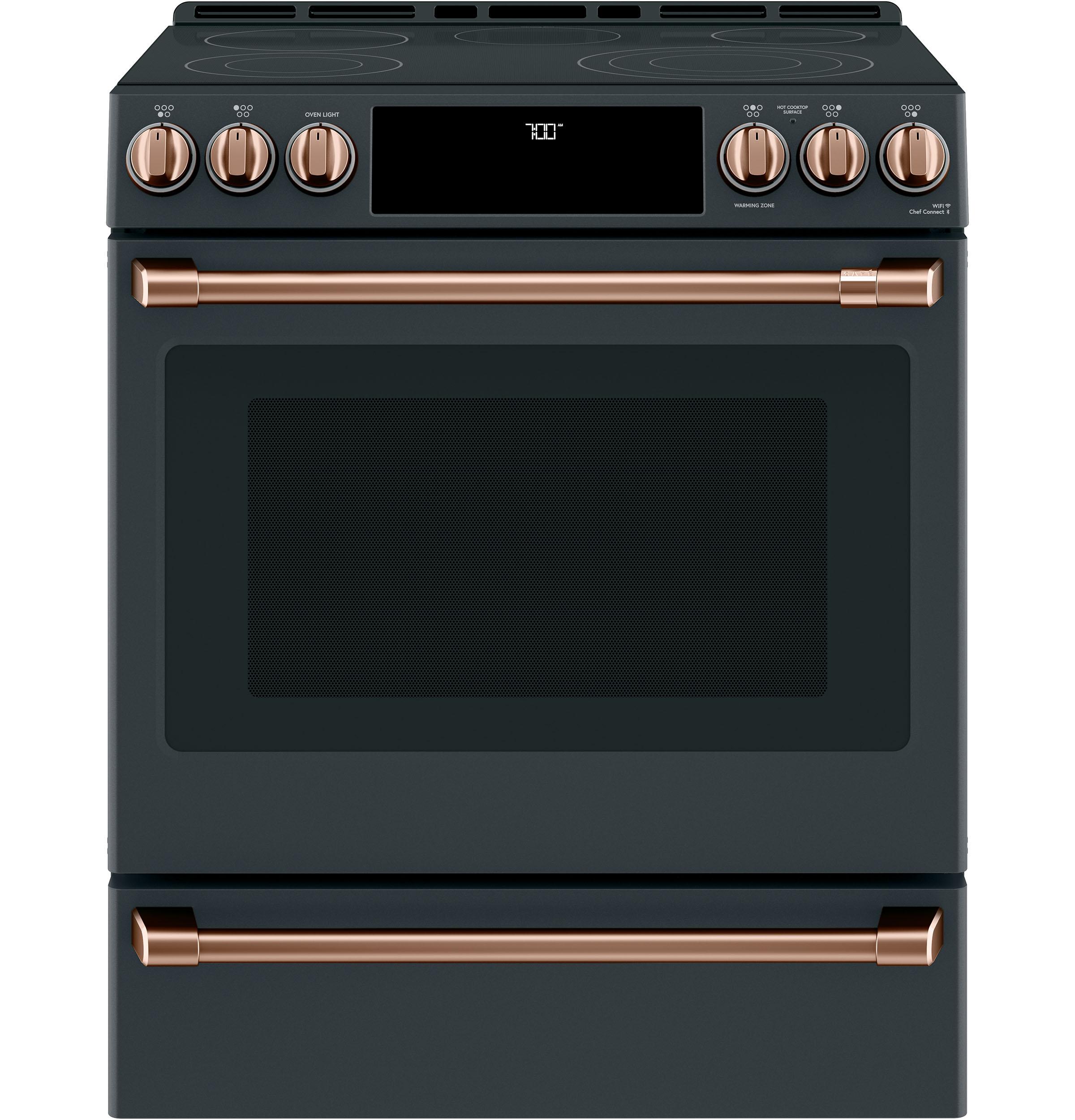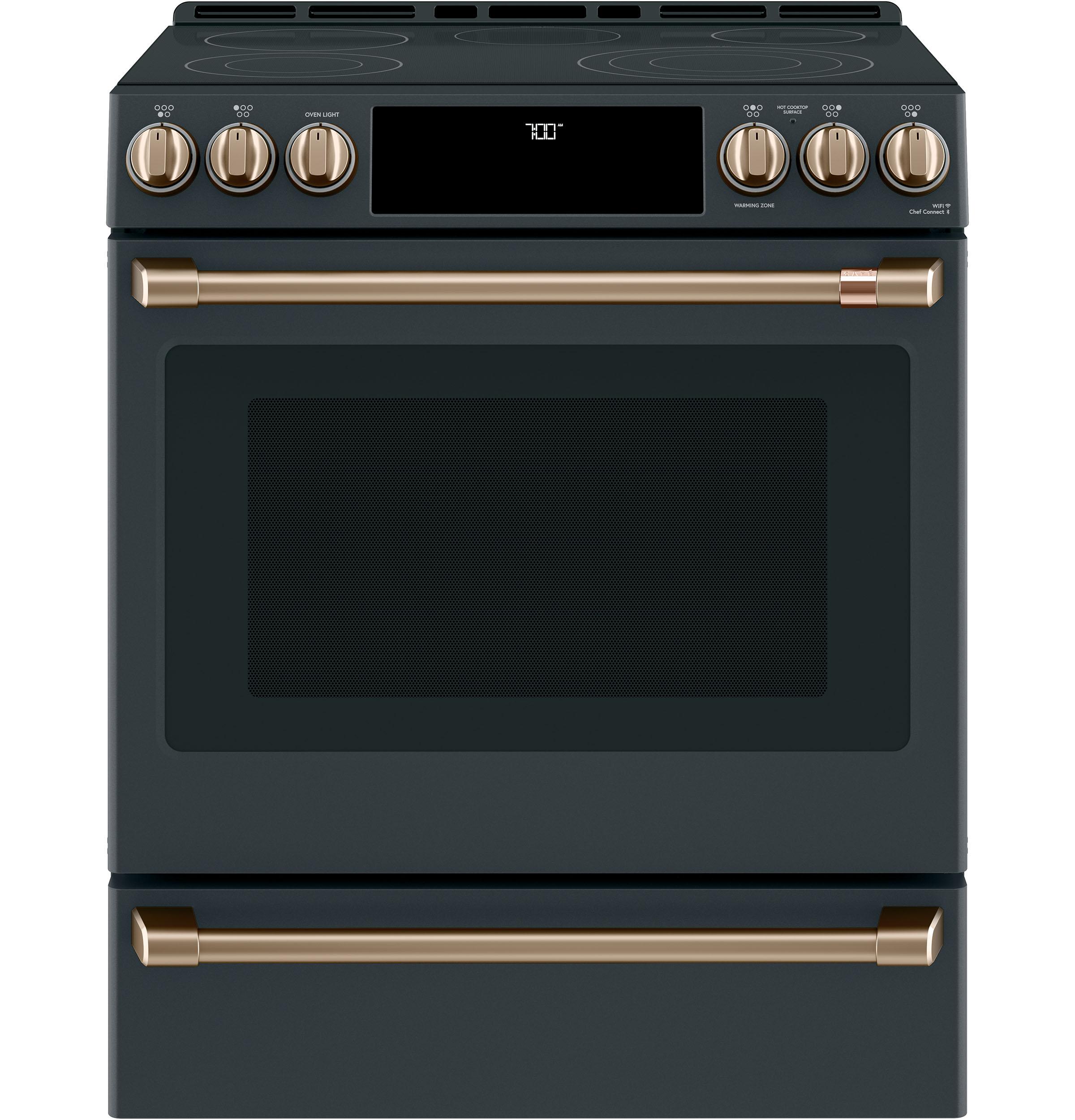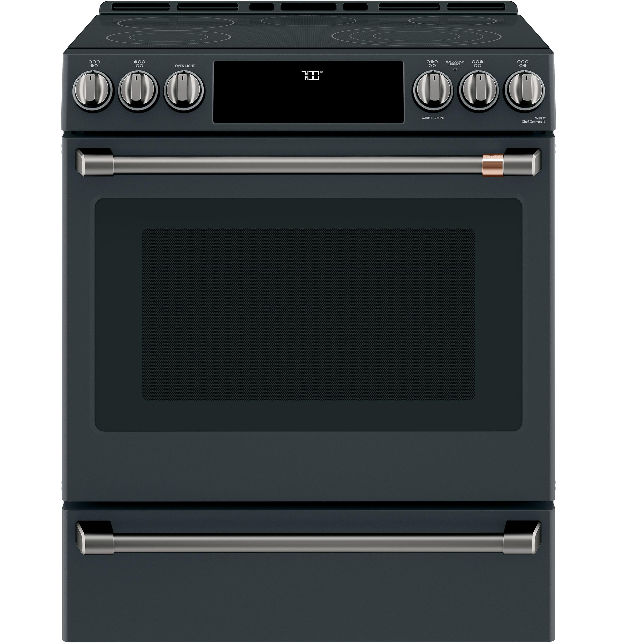 The Café CES700P3MD1 is a sophisticated 30-inch smart slide-in electric range designed to elevate your cooking experience. Its 5.7 cu. ft. oven accommodates large dishes, making it ideal for families and entertaining. The True European Convection with Precise Air system ensures even heat distribution, delivering consistent cooking results for your favorite recipes.