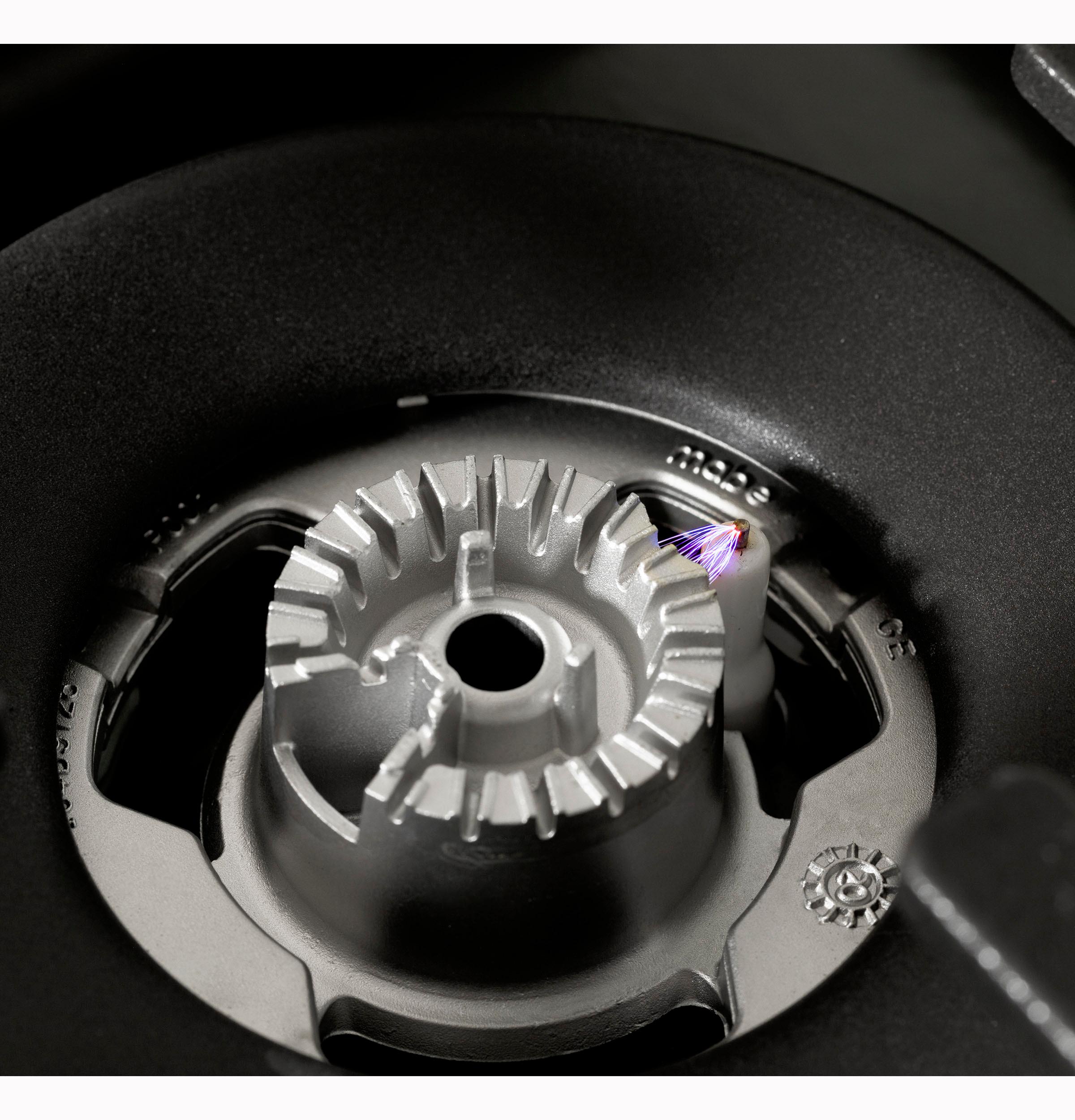 A 21,000-BTU multi-ring burner offering three different-sized flame rings on a single element for precise heat control.