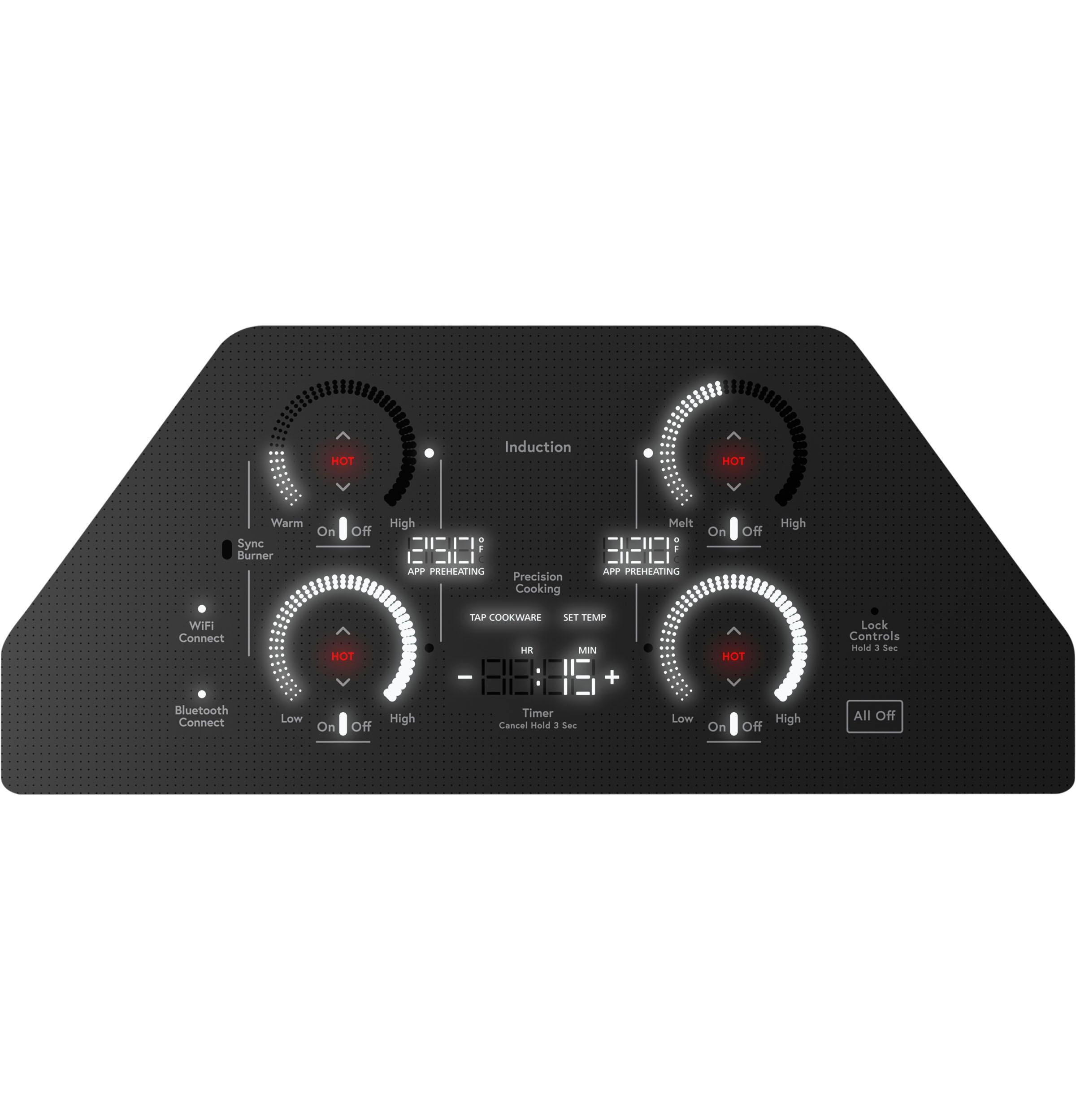 | Cooktop Control Features | All-Off Control Boost (All Elements) Chef Connect Control Lock Capability Keep-Warm Setting Kitchen timer LED Light level adjustment Melt Setting Pan Presence Sensor Pan Size Sensor Sound adjustment Sync-Burners Capability |