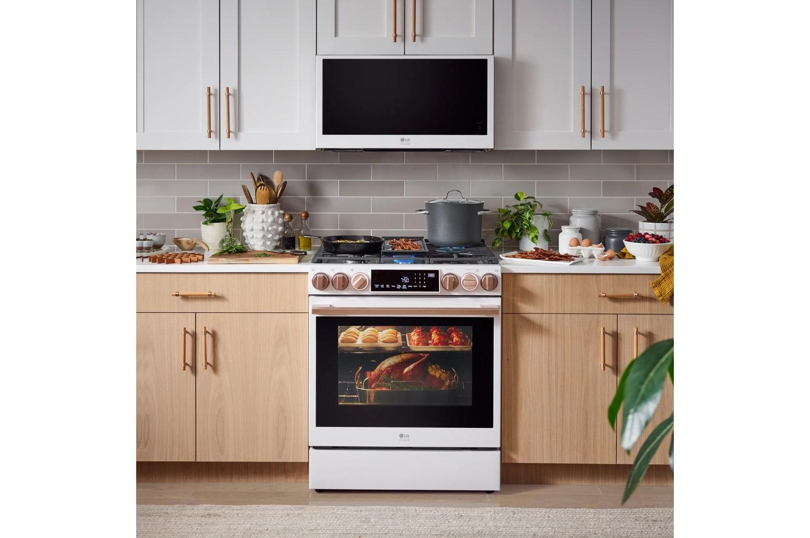 The ThinQ app offers control and convenience for smart LG appliances to help you simplify life and enjoy the comforts of home. Manage your microwave's settings remotely, sync the light and vent with your smart LG range or cooktop, send cooking instructions to the microwave with scan-to-cook , and more. ThinQ UP appliances receive software updates for new features and enhancements. Learn more.