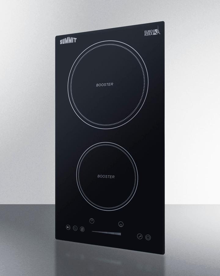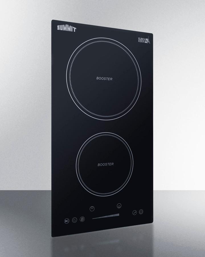 Enjoy the ease, speed, and safety of induction cooking with Summit's selection of energy efficient induction cooktops. The SINC2B230 is an ENERGY STAR certified 2-zone induction cooktop designed for use with 208-240V power sources. It comes in a popular size ideal for smaller kitchen spaces, including hotel suites and studio apartments. It is designed for installation in common cutouts sized at 10 5/8" W x 19 5/8" D. This unit requires professional installation (cord not included). The SINC2B230's surface is made of jet black glass for a contemporary look that's easier to clean. The rear element is sized at 8 1/4", ideal for boiling large pots of water or cooking with woks and other large cookware. It can function at a maximum of 2600W for up to 5 minutes when using the "booster" setting, or 2000W during regular operation. The 6 1/4" front element reaches 2000W at the booster setting, or 1500W in normal operation. Centered upfront for convenient use, the touch controls allow intuitive operation, with a slider control panel that makes it easy to adjust your heat. The digital display shows which elements are in use and their power setting. Audible beeps sound when the touch controls are activated. This cooktop is equipped with a child lock that allows you to disable the controls to prevent unintended heating. A "stop & go" function allows you to immediately turn both zones off if needed, with the last settings resuming when reactivated. This unit also includes a timer function that lets you program a power level and cook time (up to 99 minutes) that can either turn the unit off when complete, or serve as a visual countdown with an audible alert when the set time has been reached. Safety features include automatic shutdown, overheat protection, and overflow protection, which will temporarily disable the power if boiling liquid touches the control panel. With its ideal size and advanced safety features, the SINC2B230B is the perfect cooktop to ensure intuitive, safe cooking in a variety of small kitchen settings. For this unit in a white finish, see the SINC2B231W. Additional choices are available in smaller and larger sizes, as well as radiant and coil styles. Browse the full Summit line for more options. NOTE: Induction cooling utilizes magnetized energy that starts inside the cookware, meaning the temperature of the actual cooktop surface does not get nearly as hot as traditional gas or electric elements. Most of the heat is retained inside your cookware, making induction technology the most efficient heating method for your kitchen. Because induction cooking requires magnetic energy, your cookware must be made of cast iron, steel, or magnetic stainless steel. Materials that will not work include aluminum, copper, and non-magnetic stainless steel. Many of your current pots and pans may already be induction-friendly. In order to determine if your cookware will work on an induction surface, simply place a magnet (such as one hanging on your refrigerator) on the bottom of the pan. If the magnet sticks, the pan will cook. Summit also offers an induction cookware set for purchase.
