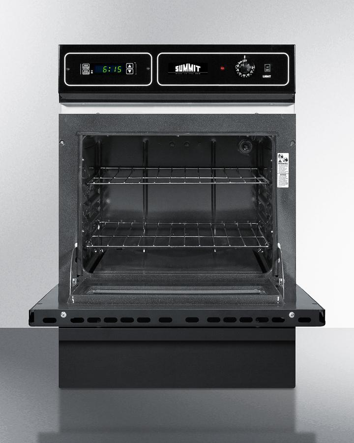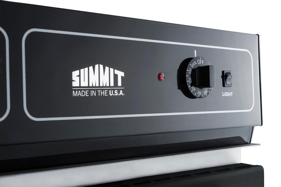 Summit brings endless possibility to small kitchen spaces with one of the industry's only 24 inch wall ovens designed to work with 110-120V connections. Made in the USA, the TEM715DK is an electric wall oven specially sized to fit common 34 1/8" H x 22 3/8" W cutouts. It includes a pre-installed cord with a standard 3-prong NEMA 5-15 plug for easy installation in 115V connections (20 amp circuit required). This unit features a jet black glass oven door and drop-down lower compartment for cookware storage. The oven includes a window and interior light with an on/off rocker switch, allowing you to view your cooking progress as needed. The exterior includes a digital clock with timer to help you keep track of your cooking. Inside, this wall oven offers nearly 3 cu.ft. of capacity to accommodate large meals. Solid porcelain construction ensures lasting durability that holds up to everyday use. We include two adjustable slide-out oven racks with brakes, as well as a two-piece broiler tray with grease well. The oven features a bake and broil setting, easily managed with one push-to-turn dial control. Summit's American-made wall ovens have an industry exclusive height to fit cutouts commonly once commonly served by discontinued models from Caloric, Slattery, and older makes, including Magic Chef. To fit other cutouts up to 39" high, add the TKW700 trim kit accessory. Additional finishes are available, as well as standard gas and 220V options and a full suite of 115V electric and induction cooktops. Browse the full Summit website to explore your options.