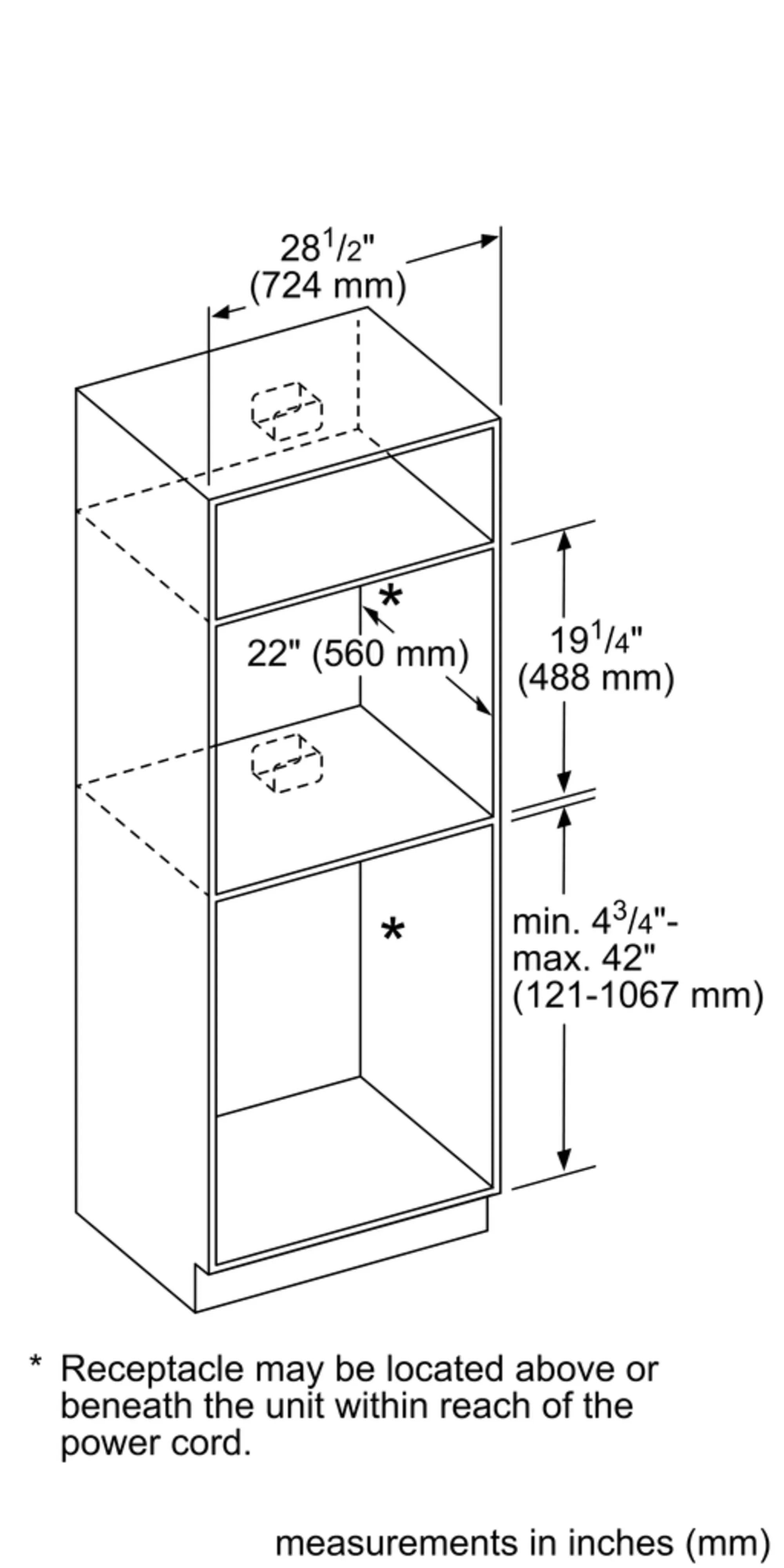 | Required Cutout Size (HxWxD) (in) | 19 1/4'' x 28 1/2'' x 22 |