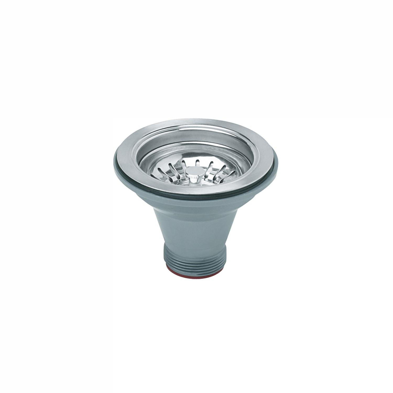 This leak-resistant Franke strainer basket prevents sink blockages by preventing food and other items from going down the drain. The durable stainless steel construction is rust and corrosion-resistant to provide long-lasting performance. Features an elegant satin nickel finish and fits most sinks with a 3.5 waste hole