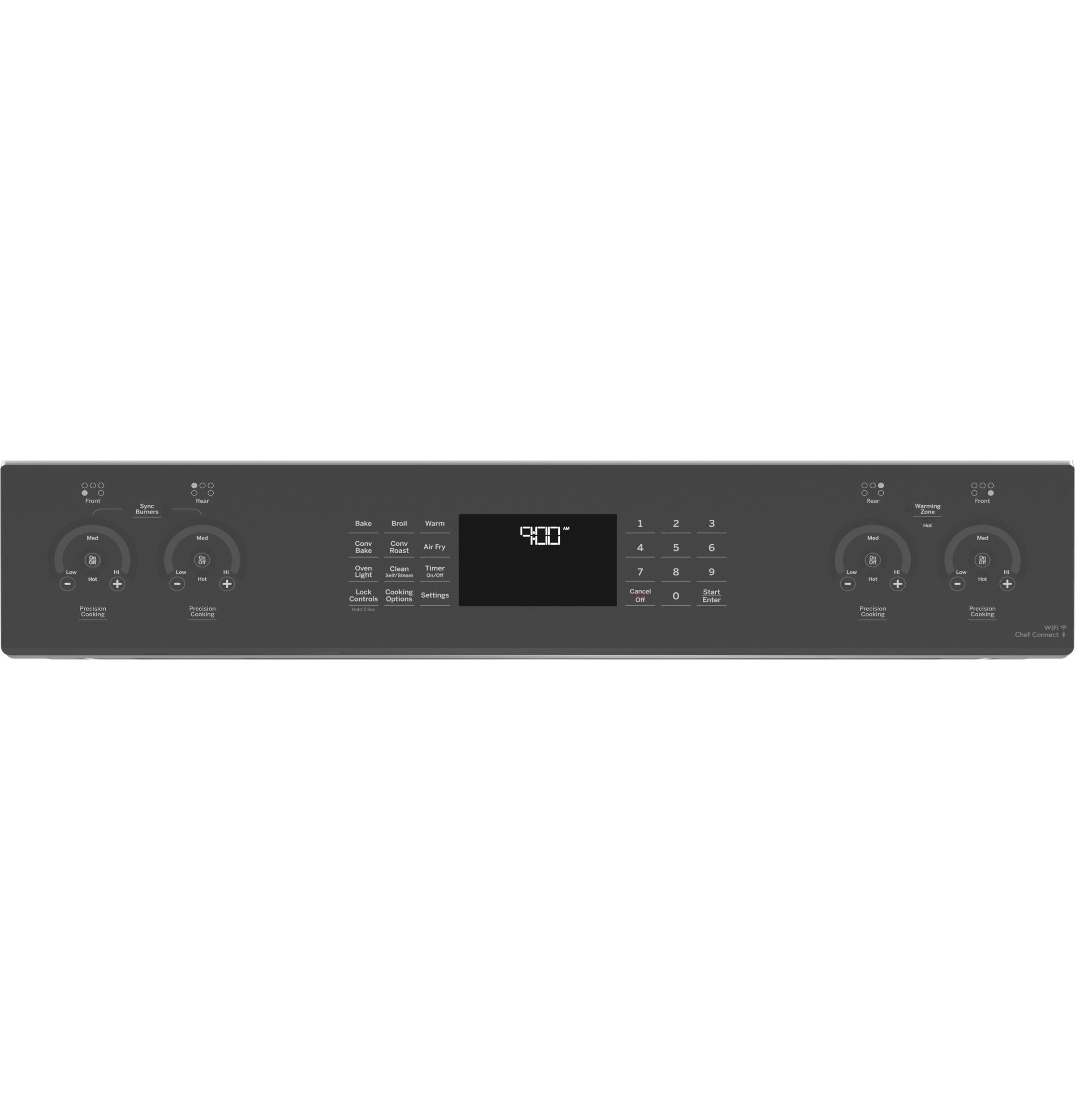 Synchronize your oven and GE Appliances over-the-range microwave so that clocks are always matching and lights automatically come on when a burner is activated with Chef Connect