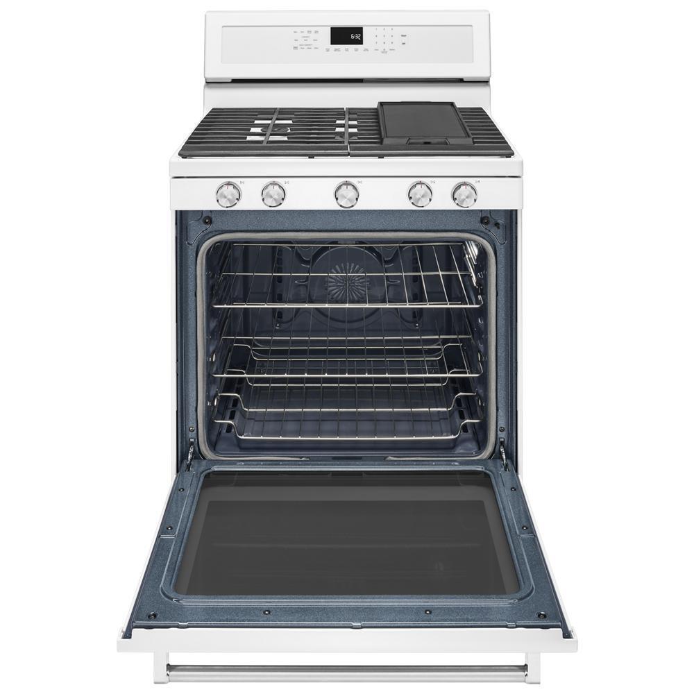 This versatile gas freestanding range produces flawless cooking results with Even-Heat(TM) True Convection. The unique bow-tie design and convection fan ensure the inside of the entire oven is heated to, and stays at, the perfect temperature. The cooktop has 5 burners ranging from 5,000 to 18,000 BTU, letting you go from a rolling boil to a delicate simmer.