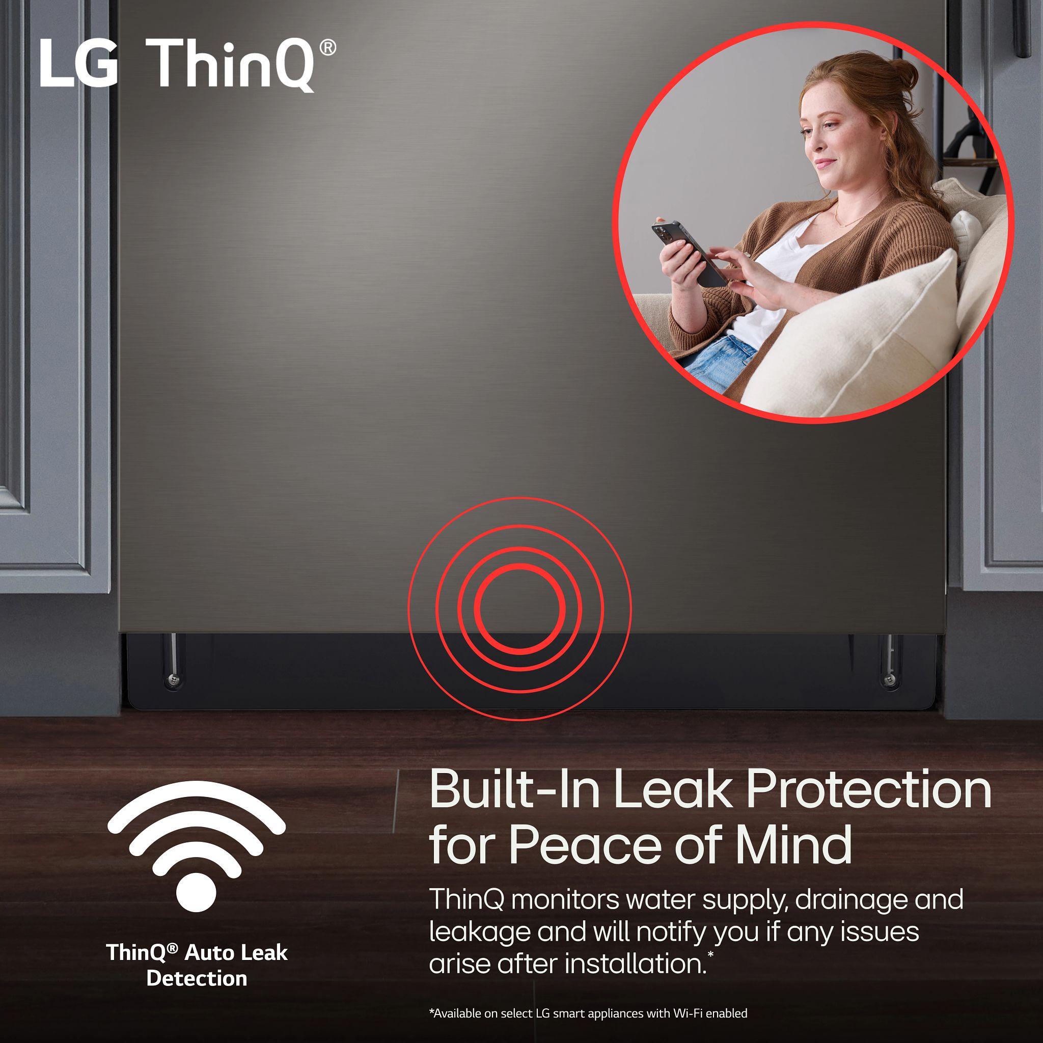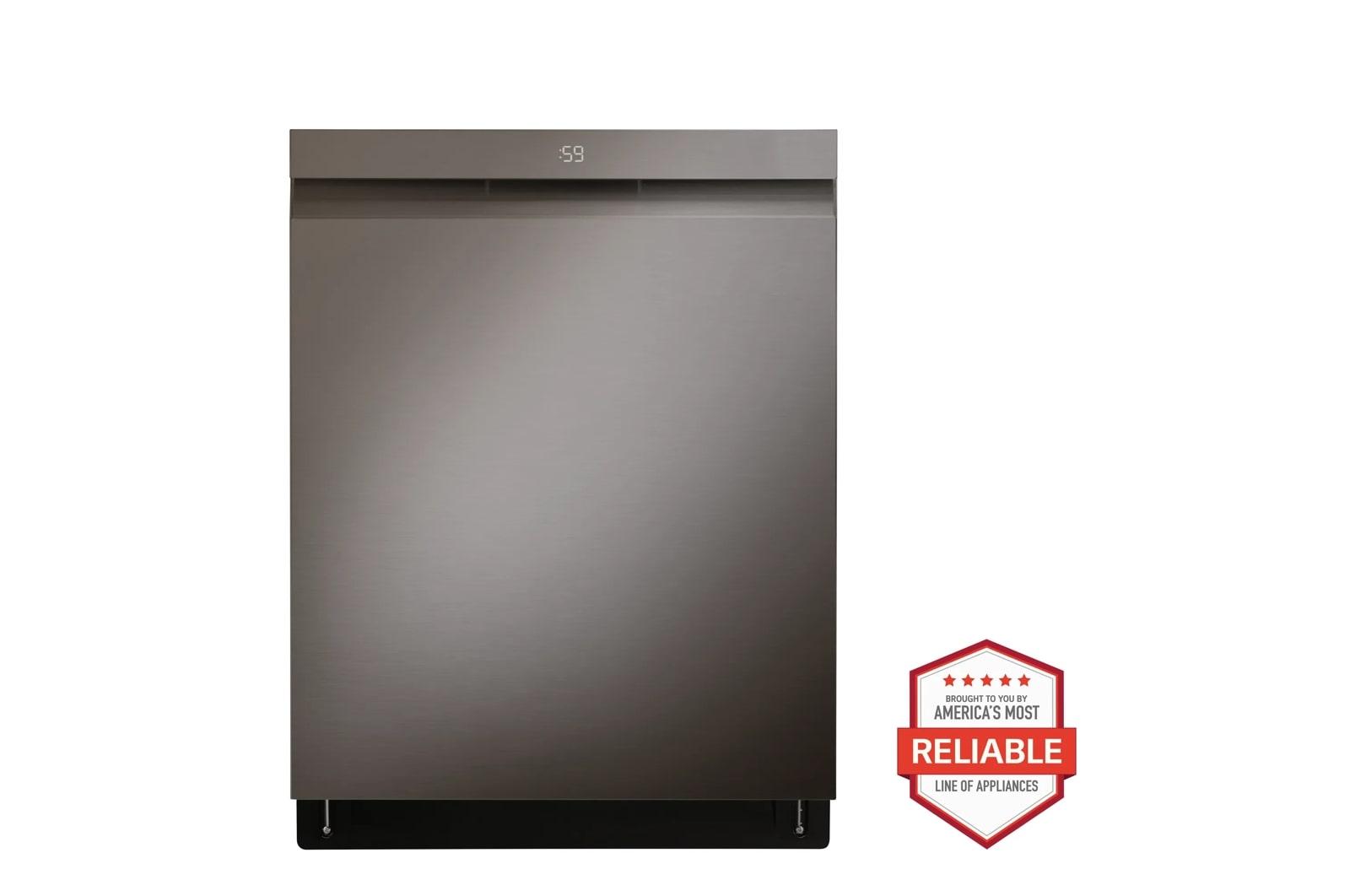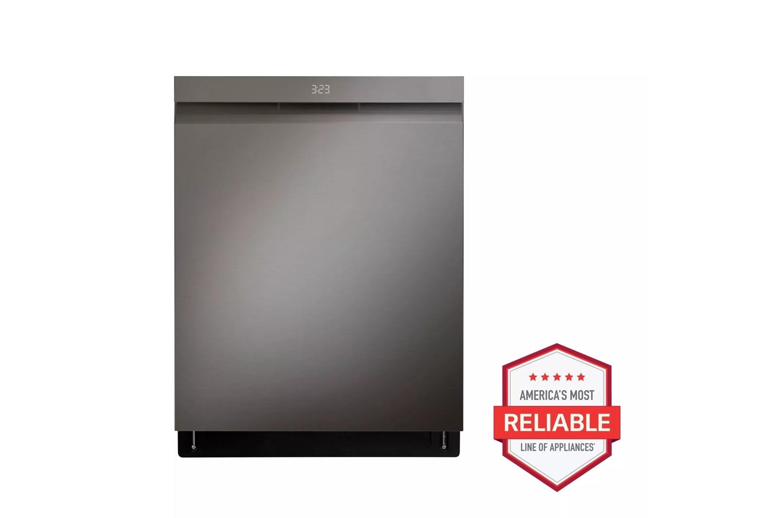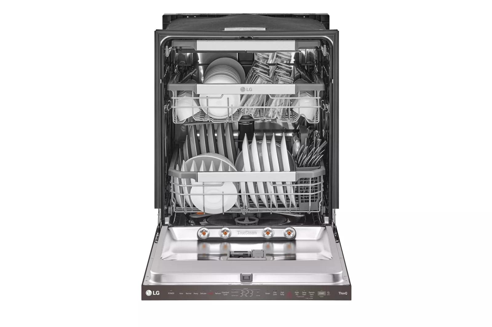 The brand LG LDPH7972D redefines dish care with innovative cleaning technology in this 24-inch top control smart dishwasher. Equipped with QuadWash® Pro, it uses high-pressure jets and improved spray coverage to tackle the toughest messes. TrueSteam® technology delivers pure steam to reduce water spots and sanitize dishes, while Dynamic Dry® enhanced with TrueSteam® ensures superior drying results. With a 3rd rack for cutlery and utensils, and adjustable EasyRack® Plus system, it offers maximum loading flexibility. The PrintProof™ black stainless steel finish resists fingerprints for easy maintenance and modern elegance. This smart dishwasher features Wi-Fi connectivity, allowing remote control and diagnostics via the LG ThinQ® app, and it operates at a whisper-quiet 38 dBA. Perfect for modern households seeking convenience, efficiency, and cutting-edge performance.