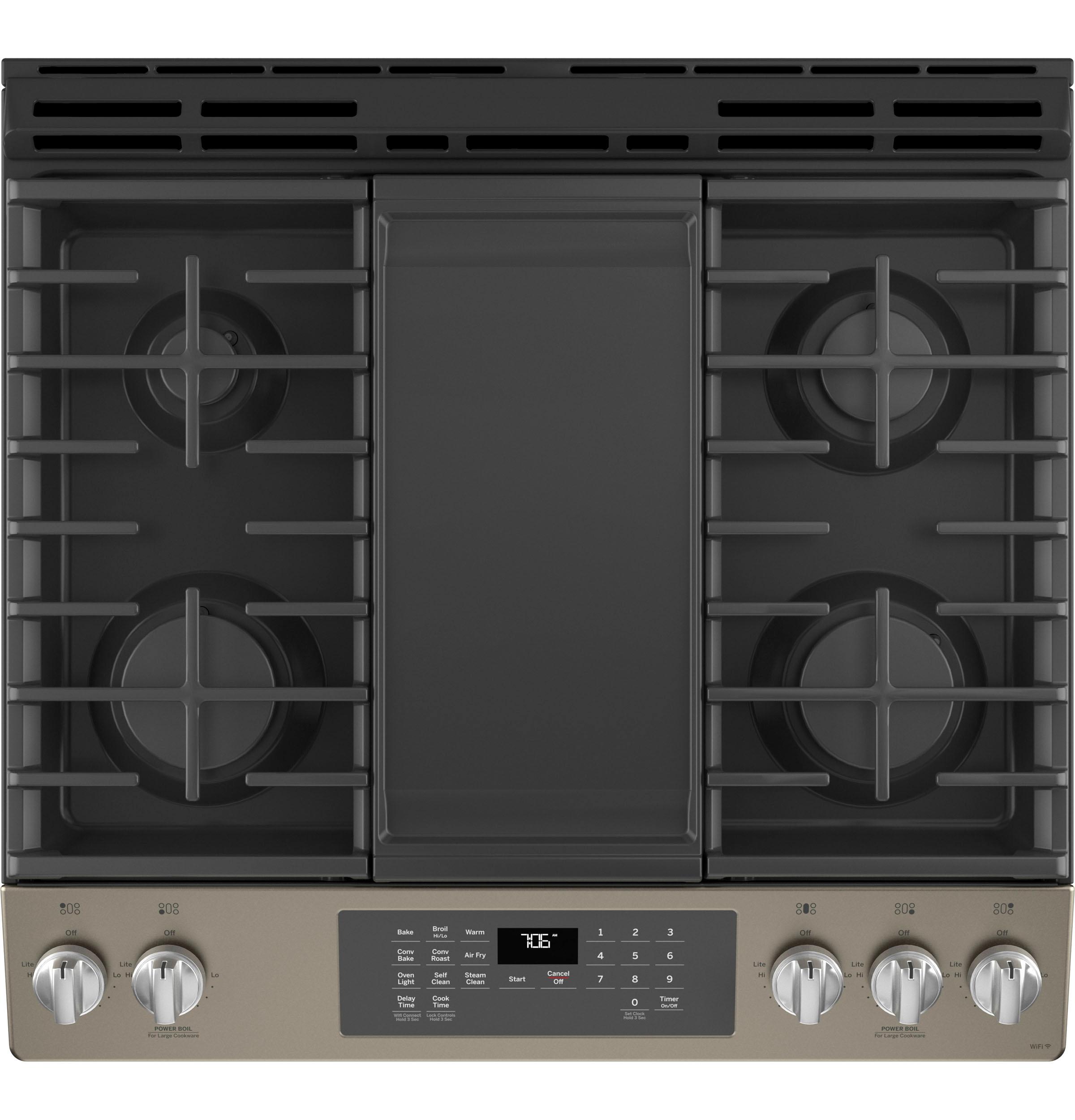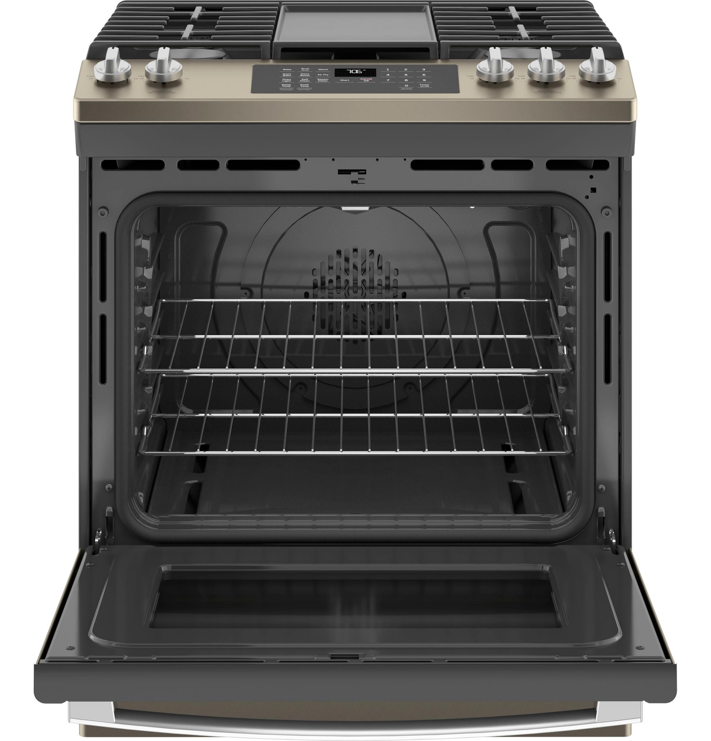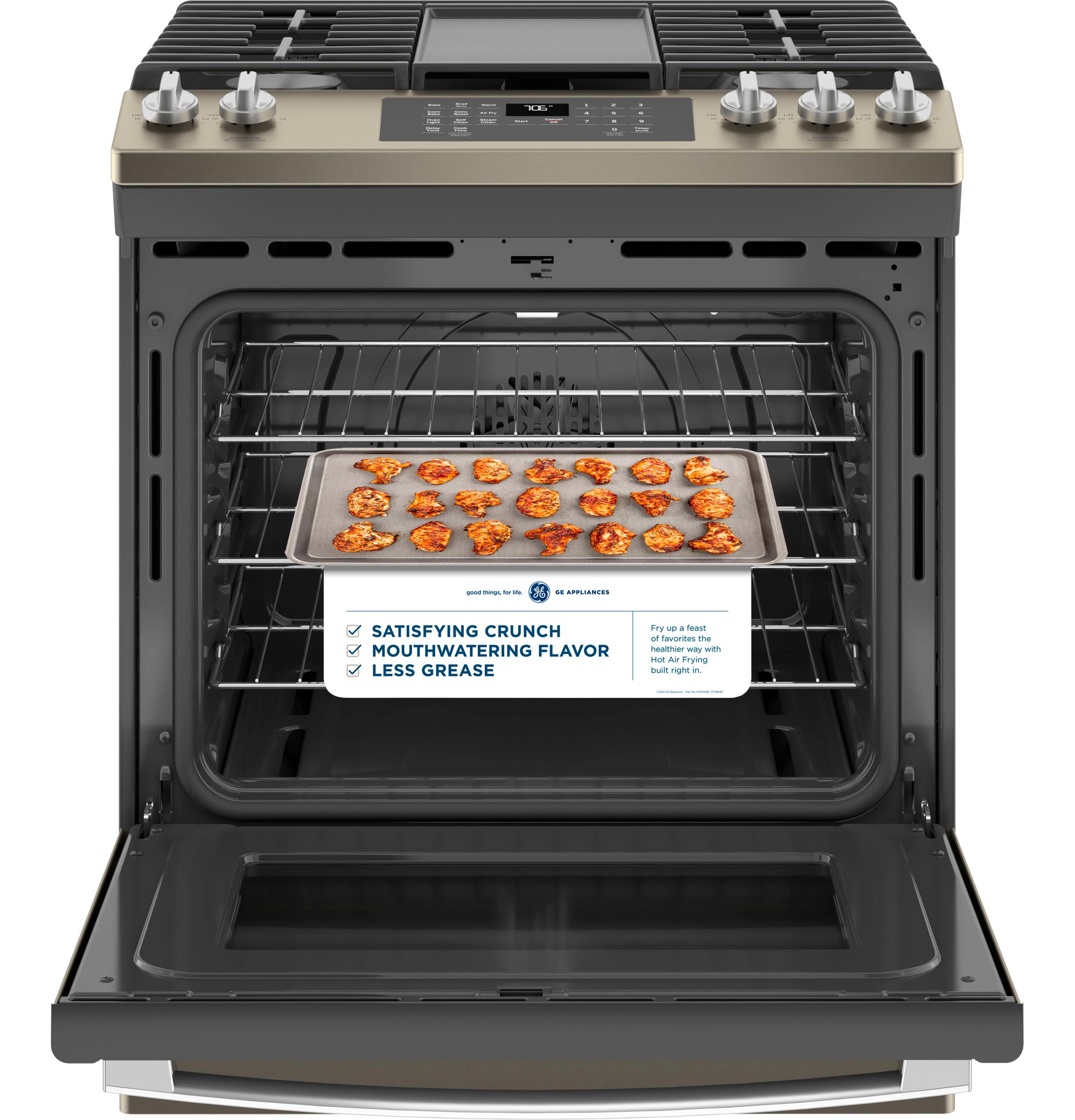 The brand GE JGS760EPES combines modern style and performance in this 30-inch slide-in gas range with a striking slate finish. Designed for flexibility, it features a powerful 21,000 BTU tri-ring burner for precise simmering and intense searing, along with an edge-to-edge cooktop that maximizes usable cooking space. The included integrated non-stick griddle offers a convenient surface for pancakes, grilled sandwiches, and more. The spacious convection oven ensures even baking results with faster cook times, while self-clean with steam clean option simplifies maintenance. With front controls for a built-in look, continuous cast iron grates for easy pan movement, and a storage drawer for added functionality, this range delivers premium performance in a stylish, slide-in design.