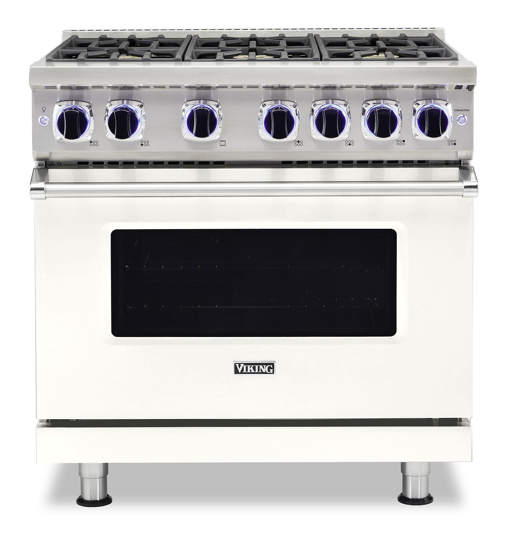 The Viking VGR73626BPWLP 36 Inch Freestanding Gas Range combines robust functionality with commercial-grade precision. Boasting six sealed burners including a 15,000 BTU high-performance burner and a 9,000 BTU simmer burner, it provides flexible heat control for various cooking styles. The spacious 5.2 cu. ft. convection oven ensures evenly baked results, while the VSH™ Pro Sealed Burner System delivers consistent heat on every burner. Constructed with professional-grade stainless steel, heavy-duty knobs, continuous cast-iron grates, and equipped with automatic ignition/re-ignition and a self-clean oven system, this LP gas-ready range is built for performance and style in modern and gourmet kitchens.
