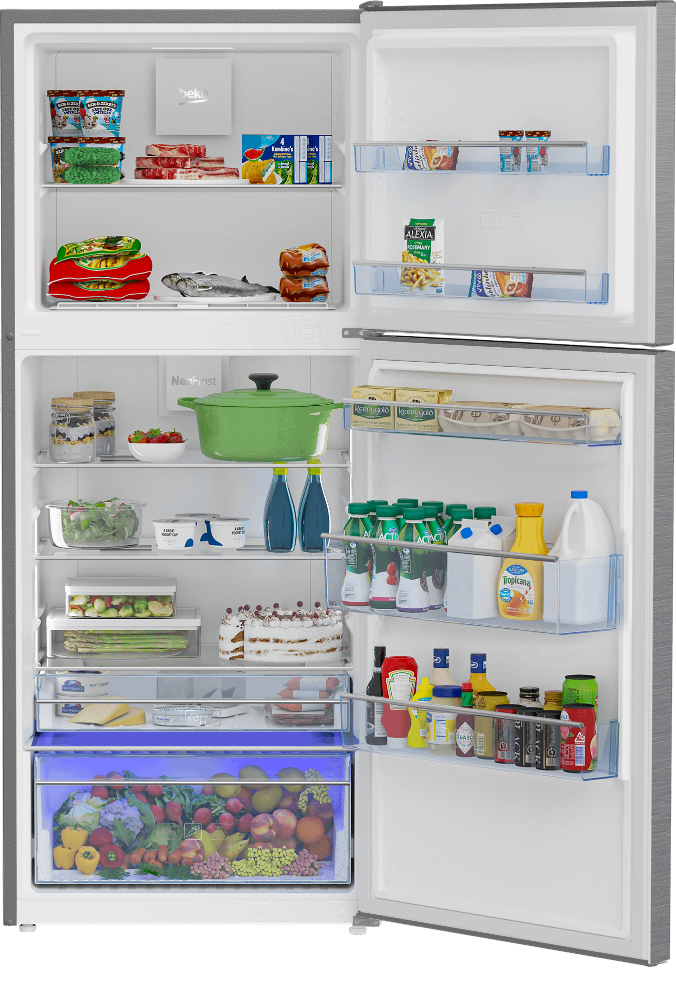 LED lights provide efficient, uniform lighting throughout Beko refrigerator interiors.