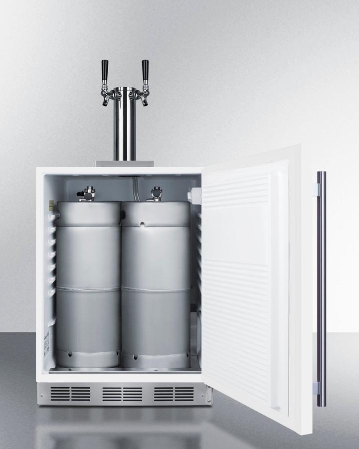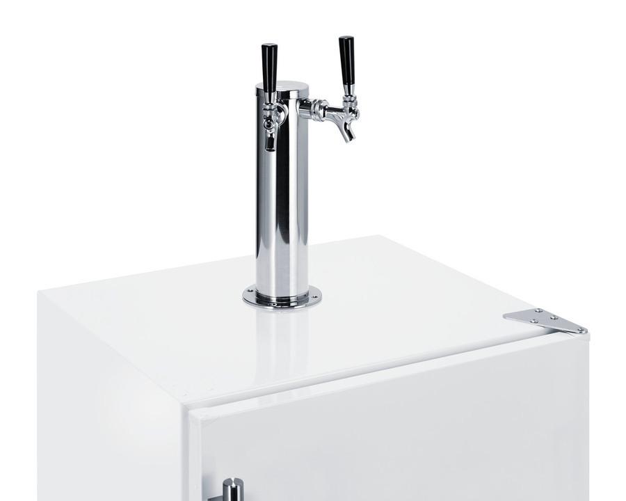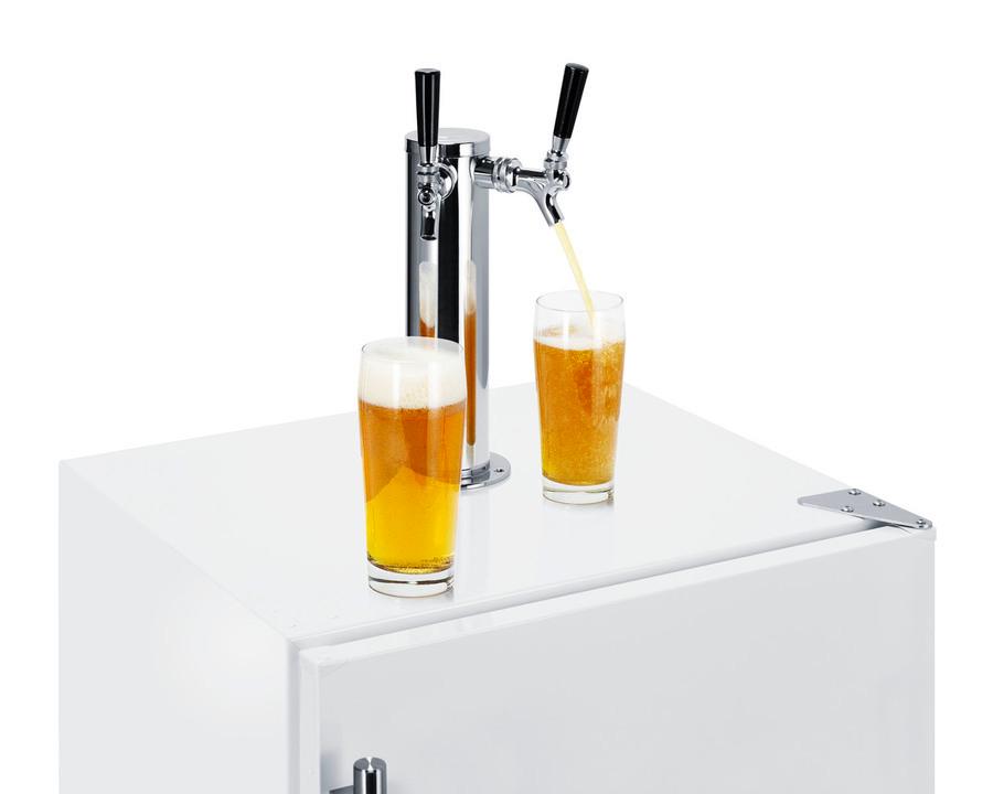 Summit Commercial brings unique appliance choices to ADA compliant settings with a new line of commercial beer dispensers made in Europe. Sized at 32 inches high, the SBC58WHBIADA is designed to fit under lower ADA compliant counters. The front-breathing design allows built-in installation, while the fully finished cabinet also enables freestanding use. This unit comes in a clean white finish accented by a stainless steel kickplate and pro style handle. We include a removable two-piece stainless steel drip tray for cleaner service. The SBC58WHBIADA ships with a complete Sankey American dual tap kit complete with a draft tower, regulator, 5 lb. CO2 tank, and all the equipment you need to serve beer on tap. Inside, the SBC58WHBIADA is designed to hold two 1/6 (sixtel) kegs (note: interior does not accommodate a standard half barrel). Automatic defrost ensures easy user maintenance, with a seamless interior for easier cleaning. The stainless steel floor offers added durability when loading kegs. This unit includes an interior light with an on/off rocker switch and a dial thermostat for easy and intuitive temperature management. A CO2 tank bracket is located inside, allowing you to keep the tank in the unit and save on exterior depth. The SBC58WHBIADA is ETL-S listed to NSF-7 commercial standards. Additional ADA compliant European kegerators are available with stainless steel, panel-ready, or glass doors. Browse our complete line for more choices.