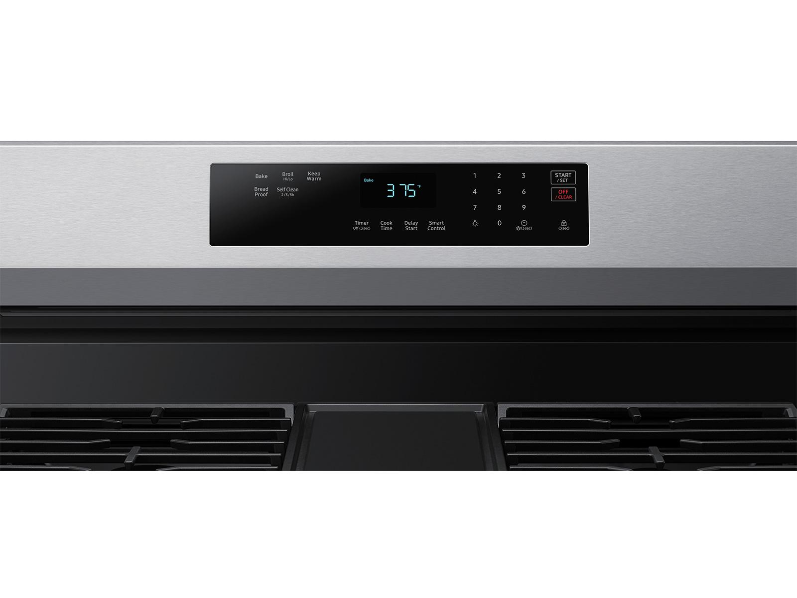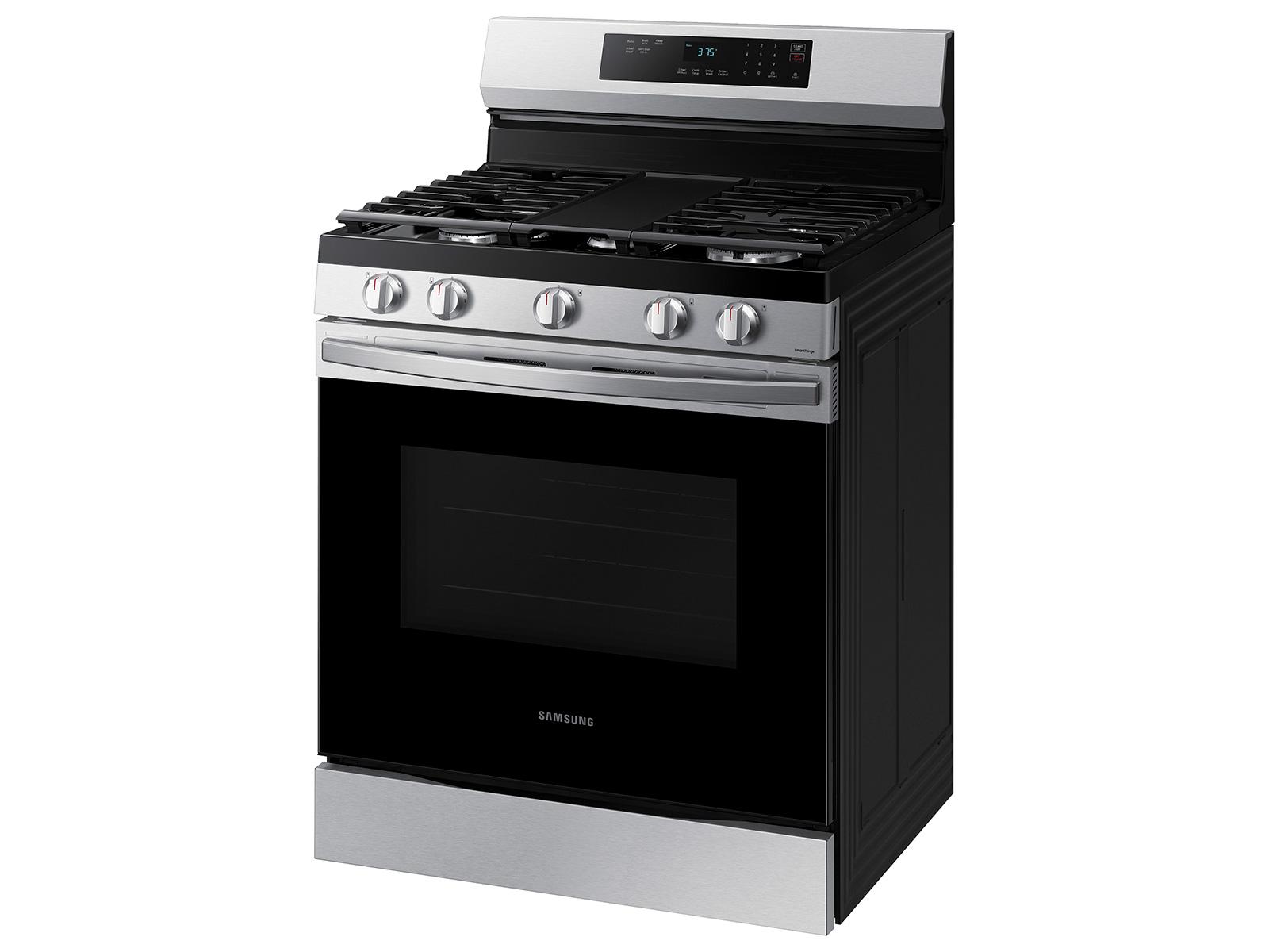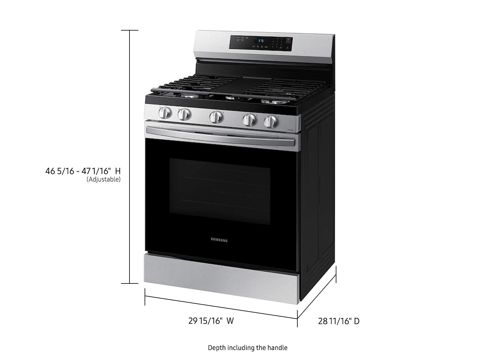 The Samsung NX60A6311SS is a 30-inch freestanding gas range designed to enhance your cooking experience with advanced features and modern design. It boasts a spacious 6.0 cu. ft. oven capacity, providing ample space for large meals. The cooktop includes five sealed burners, featuring two power burners and continuous cast iron edge-to-edge grates, allowing for easy movement of cookware across the surface. The integrated griddle offers additional cooking versatility. With Wi-Fi connectivity, you can monitor and control your oven remotely using the SmartThings app, making cooking more convenient and efficient.