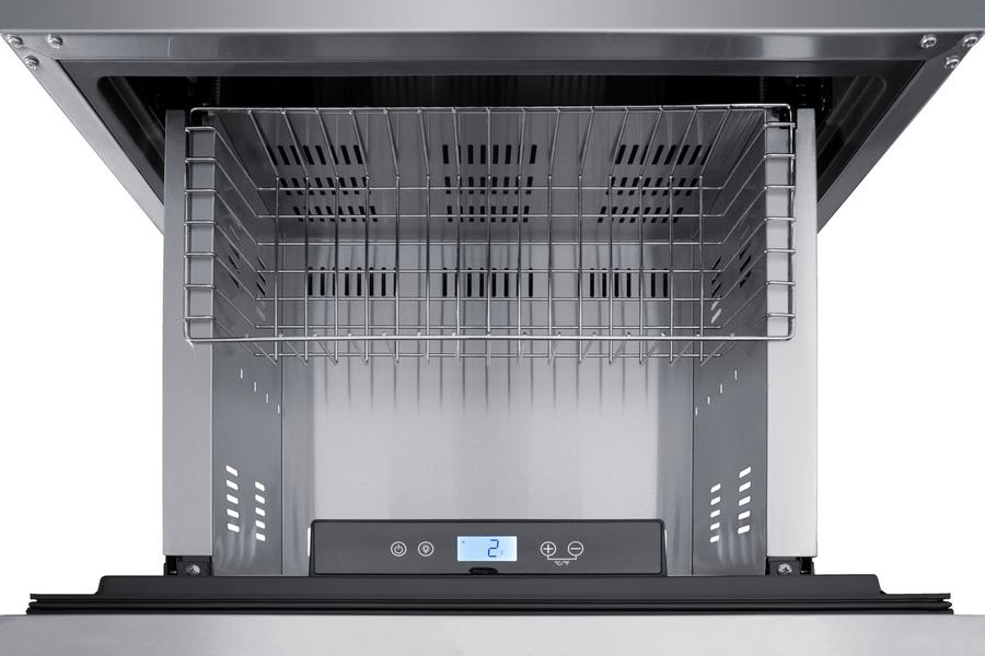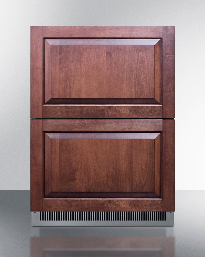 Summit manufactures an extensive selection of drawer refrigeration for versatile installation indoor or outdoor kitchen spaces, with customizable designs that allow easy integration into any cabinet style. The ADFD2D24PNR is a two-drawer all-freezer sized at 32 inches high for installation under ADA compliant counters. We include an extra stainless steel kickplate and leveling legs to raise the height to 34 1/2 inches to suit more standard applications. The front-breathing design and finished cabinet allow for built-in or freestanding use. The drawers can be customized with overlay panels to match or accent existing cabinetry design, while the stainless steel kickplate and stylish handles complete the look (recommended panel dimensions: 23.34" W x 13.93" D at 3/4" thick). Complete 304 stainless steel construction inside and out offers durability in a professional look. Soft close glides deliver added safety by preventing the drawers from slamming. Frost-free operation ensures minimum user maintenance inside the 3.5 cu ft. interior. Two adjustable dividers allow for flexibility in storage, while the removable basket provides additional storage options. Additionally, removable drawers provide versatility and easy cleaning of the unit s interior. The LED light makes it easy to view stored contents when loading or unloading each drawer. Additional features ensure efficiency and ease of use. These include temperature and open drawer alarms. The digital thermostat and display make it easy to manage the temperature. A temperature memory function helps to recover temperature settings in the event of a power loss, while Sabbath Mode disables certain electrical features for up to 96 hours during periods of religious observance. The ADFD2D24PNR is perfect for use in home or commercial settings. This unit is ETL-S listed to NSF-7 standards, and its ENERGY STAR certification assures efficient and environmentally friendly operation. For a matching refrigerator, see model ADRD24PNR.