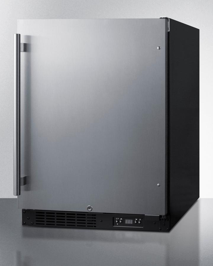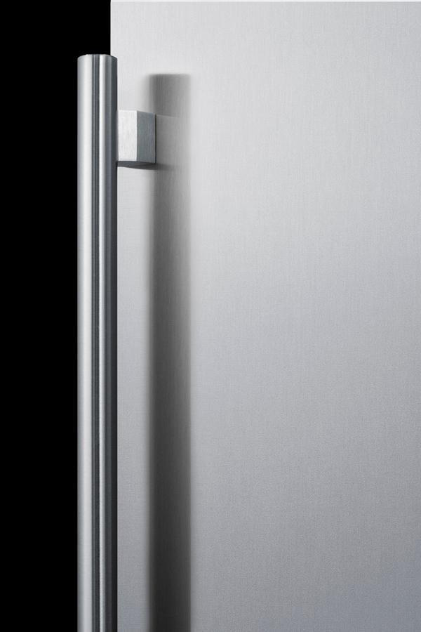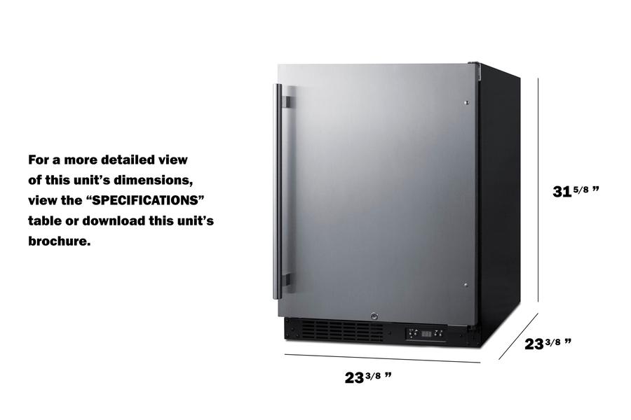 Summit manufactures the industry's largest selection of built-in appliances sized for use under lower ADA compliant counters, including frost-free freezers specially designed to match our popular ADA compliant refrigerators. The ALFZ51 is a 24 inch wide all-freezer designed and approved for residential or commercial use. The front-breathing design allows built-in installation, while the fully finished black cabinet also enables freestanding use. Sized just under 32 inches high and 24 inches wide, this unit makes an ideal fit under lower ADA compliant counters. The user-reversible door comes in a stainless steel finish and a pro style handle provides a professional, elegant look for any setting. A temperature alarm offers added security should the temperature go beyond the setpoint, and the optional Sabbath Mode can be used to disable certain electrical features during periods of religious observance for up to 96 hours. The frost-free cooling system keeps the unit running efficiently with little user maintenance, and the internal fan ensures the unit is evenly cooled. Digital controls ensure easy temperature management. Inside, three easy-glide glass shelves that extend 50% provide flexible storage, and the shelving brake system keeps unit contents safe when loading and unloading. Two door racks are ideal for keeping commonly accessed items in easy reach. With its advanced user features and versatile design, the ALFZ51 is an excellent addition to any ADA compliant setting looking for a frost-free freezer with a modern, elegant look. To create a matching set, pair with the AL55 refrigerator.