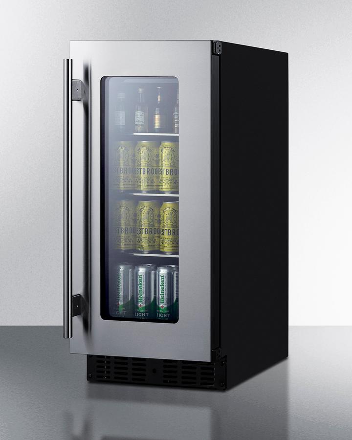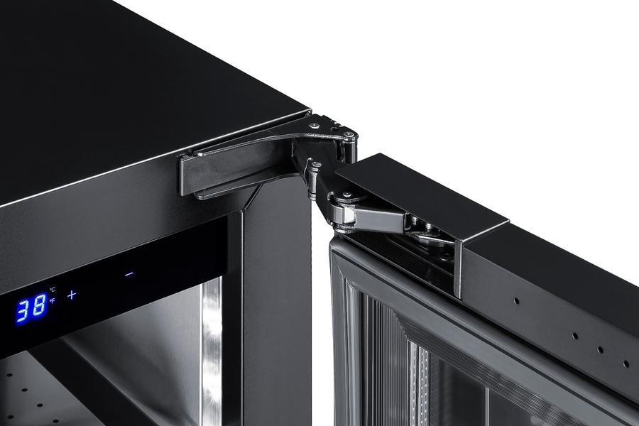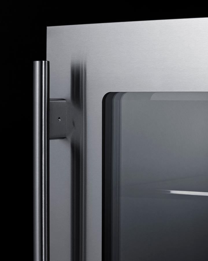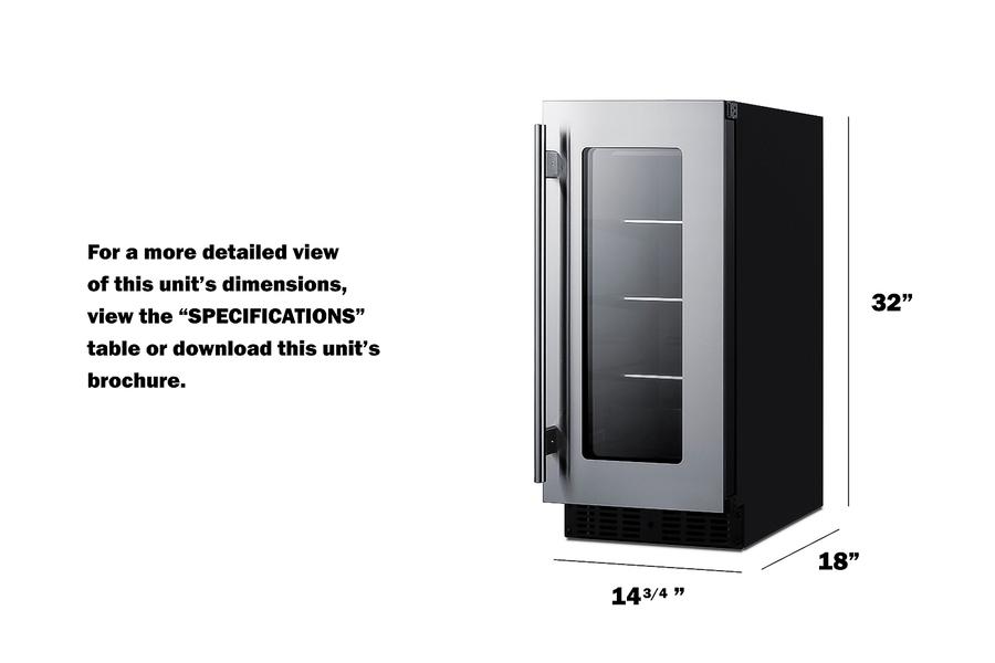 Summit's shallow depth series of built-in undercounter refrigeration brings full functionality to kitchen islands, wet bars, and other settings with space limitations. Model ASDG1521 is a 15" wide beverage refrigerator sized under 18" deep. It comes in a 32" height to fit under lower ADA compliant counters, with adjustable legs and a sliding kickplate cover that also allows you to raise the overall height up to 34" to fit standard counter spaces. The front-breathing system allows built-in installation, while the fully finished black cabinet also allows freestanding use. Seamless stainless steel trim blends smoothly into the double pane tempered glass door for an elevated look, with a professional stainless steel handle included. This unit has a sealed rear and right angle cord for a better fit. The door is user-reversible and includes a front lock. Inside, the ASDG1521 features stainless steel construction for improved durability and sanitation. Fan-forced cooling ensures even temperature distribution and fast temperature recovery. This unit includes an LED strip on each side of the interior cabinet, with dimmable settings in a gentle white hue that lets you create the perfect display conditions. A commercial grade cantilevered shelving system with glass shelves ensures flexible storage to accommodate any size. Additional features include an open door alarm, high temperature alarm, and Sabbath mode setting that lets you disable some of the electrical elements during periods of observance. The ASDG1521 is ETL-S listed to NSF-7 commercial standards but can also be used in the home. With its deluxe style, user-friendly features, and uniquely shallow depth, this unit offers premium value for a variety of settings. Create a matching set by pairing this with our ASDW1522 wine cellar. Additional 18" deep choices are available in 15", 19", and 24" widths, including outdoor refrigerators, refrigerator drawers, wine cellars, and more.