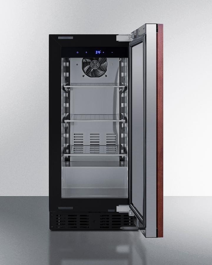 Summit's shallow depth series of built-in undercounter refrigeration brings full functionality to kitchen islands, wet bars, and other settings with space limitations. Model ASDS1523IF is a 15" wide all-refrigerator sized under 18" deep. It comes in a 32" height to fit under lower ADA compliant counters, with adjustable legs and a sliding kickplate cover that also allows you to raise the overall height up to 34" to fit standard counter spaces. The front-breathing system allows built-in installation, while the fully finished black cabinet also allows freestanding use. This unit has a sealed rear and right angle cord for a better fit. The stainless steel wrapped door features a fully articulating European-style hinge and can be customized with an overlay panel to match adjacent cabinet. Inside, the ASDS1523IF features stainless steel construction for improved durability and sanitation. Fan-forced cooling ensures even temperature distribution and fast temperature recovery. Recessed LED lighting offers an attractive yet efficient look. The digital thermostat makes it easy to manage the interior temperature. This unit includes cantilevered shelving system with glass shelves for flexible storage. Additional features include an open door alarm, high temperature alarm, and Sabbath mode setting that lets you disable some of the electrical elements during periods of observance. The ASDS1523IF refrigerator is ETL-S listed to NSF-7 commercial standards but can also be used in the home. With its deluxe style, user-friendly features, and uniquely shallow depth, this unit offers premium value for a variety of settings. Additional 18" deep choices are available in 15", 19", and 24" widths, including outdoor refrigerators, refrigerator drawers, wine cellars, and more.