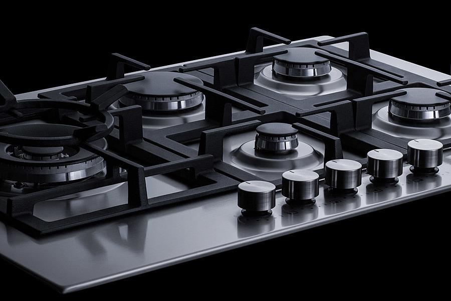 Summit s 'Made in Italy' gas cooktops offer a powerful performance in a durable, safe, and stylish design. The GCJ5SS is sized at a standard 30 inch width but has a design that fits many traditional 24 inch cutouts, with five burners to maximize your cooking power in a more efficient use of counter space. The 304 grade stainless steel surface offers a durable, elegant design. The controls are located at the front of the unit for easy access. Continuous cast iron grates allow for easy movement between burners for efficient cooking while using multiple cooking vessels. The smooth surface edge adds safety in a stylish look. The heavy-duty round knobs deliver additional safety by requiring a gentle push-to-turn motion to ignite, with thermocouple flame protection to ensure the gas turns off if the flame goes out. Featuring five gas burners manufactured by Defendi, this cooktop offers a variety of cooking options for unparalleled performance. The left-side 12,700 BTU ultra rapid dual flame burner comes with a cast iron wok ring for quick heating of larger cooking vessels. The top-center 10,000 BTU rapid burner is ideal for boiling water or cooking larger dishes, while the bottom-center 3,400 BTU auxiliary burner works well for precision heating and cooking. The two right-side 6000 BTU semi-rapid burners meet most cooking needs. The GCJ5SS uses electronic spark ignition and is preset for natural gas operation. A conversion kit that allows for LP gas connection is included. A standard three-pronged 115V cord is pre-installed for easy hookup. The 'Made in Italy' collection has gas cooktop options to fit any cooking need, including one, two, four, and five burner choices. Browse our website to explore the full collection.