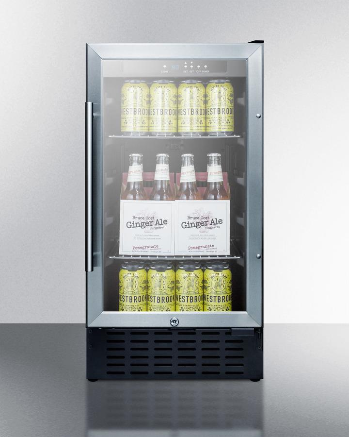 SUMMIT's selection of built-in undercounter beverage coolers combines user-friendly convenience with elegant style for an ideal fit in any setting. The SCR1841BADA is an 18" wide all-refrigerator designed for use in residential settings. At 32" high, this unit is designed to fit under lower ADA compliant counters. The front-breathing system allows built-in installation, while the fully finished black cabinet also allows freestanding use. This unit has a user-reversible stainless steel trimmed triple pane tempered glass door for safe storage. A professional handle and factory-installed lock are included. Items can be stored on four adjustable chromes shelves in the auto defrost interior, with attractive LED lighting providing an elegant display. The digital thermostat offers intuitive temperature management. In addition to this unit, Summit offers a full collection of 18" wide ADA compliant choices, including single and dual zone wine cellars, refrigerators, and frost-freezers. Browse our website for more.