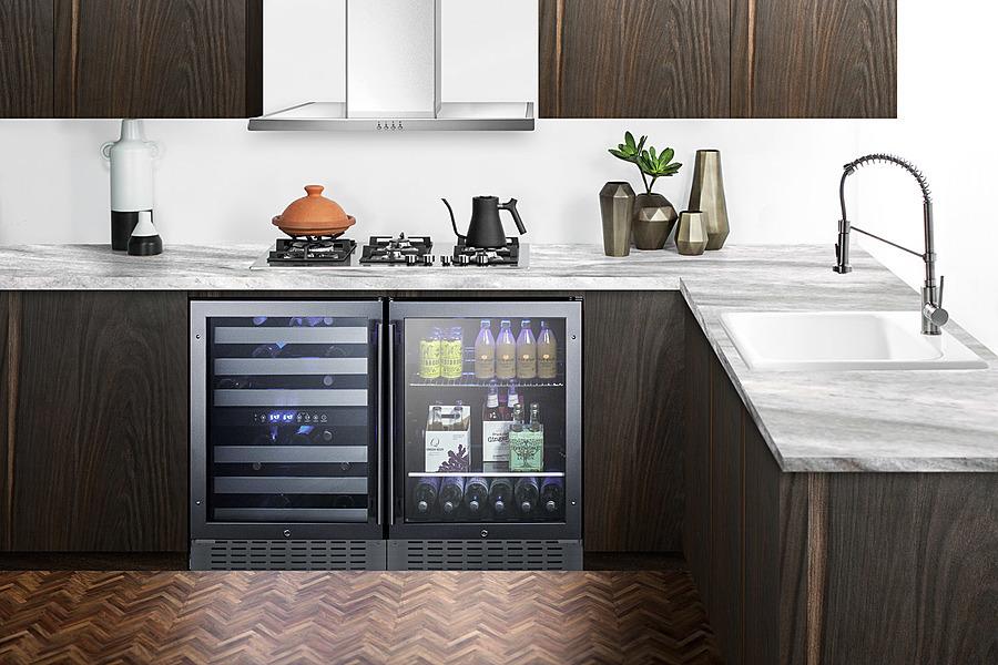 With a dual-purpose design, the SCR2466BCSS can serve as a beverage cooler or refrigerator offering unmatched versatility for residential or commercial use. The SCR2466BCSS is ETL-S listed to NSF-7 commercial standards and also meets residential standards. The front-breathing design allows built-in installation, while the fully finished stainless steel cabinet also enables freestanding use. The user-reversible double pane tempered glass door features a seamless stainless steel door trim and pro style handle in stainless steel, while a stainless steel kickplate completes the look. A temperature alarm provides added security should the temperature go beyond the setpoint. The optional Sabbath Mode can be used to disable certain electrical features during periods of religious observance. The automatic defrost system keeps the unit running efficiently with little user maintenance. Inside, the SCR2466BCSS has a digital control panel which allows you to manage the unit s temperature with ease. An adjustable temperature range between 34 and 65 F allows for a variety of beverage storage options. Three pull-out chrome shelves provide maximum storage capacity, while the fourth glass shelf allows for contents to be stood upright for added storage flexibility. The shelving brake system keeps the unit contents safe during loading and unloading, and the slotted floor ensures easy and safe storage of wine bottles. The soft LED lighting in a gentle blue hue offers an attractive and efficient presentation. With its advanced user features and versatile design, the SCR2466BCSS is an excellent addition to any setting looking for a beverage cooler with a modern, elegant look. This unit can be paired with the SWC532BLBISTCSS wine cellar for a matching set.