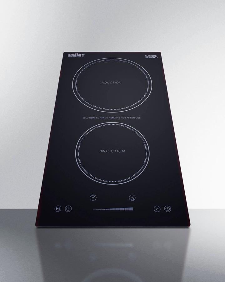 Enjoy the ease, speed, and safety of induction cooking with Summit's selection of energy efficient induction cooktops. The SINC2B115 is an ENERGY STAR certified 2-zone induction cooktop designed for use with 110-120V power sources. The pre-installed cord includes a 3-prong NEMA 5-15P plug for fast setup. This cooktop comes in a popular size ideal for smaller kitchen spaces, including hotel suites and studio apartments. It is designed for installation in common cutouts sized at 10 5/8" W x 19 5/8" D. The SINC2B115's surface is made of jet black glass for a contemporary look that's easier to clean. The rear 1800W element is sized at 8 1/4", ideal for boiling large pots of water or cooking with woks and other large cookware. The 6 1/4" 1300W front element is ideal for smaller pots and pans. NOTE: due to the 115V operation, a power management function limits the overall output to 1800W. If both elements are in use and the power is exceeding 1800W, the cooktop will automatically reduce the power level of the element that is not being adjusted. Centered upfront for convenient use, the touch controls allow intuitive operation, with a slider control panel that makes it easy to adjust your heat. The digital display shows which elements are in use and their power setting. Audible beeps sound when the touch controls are activated. This cooktop is equipped with a child lock that allows you to disable the controls to prevent unintended heating. A "stop & go" function allows you to immediately turn both zones off if needed, with the last settings resuming when reactivated. This unit also includes a timer function that lets you program a power level and cook time (up to 99 minutes) that can either turn the unit off when complete, or serve as a visual countdown with an audible alert when the set time has been reached. Safety features include automatic shutdown, overheat protection, and overflow protection, which will temporarily disable the power if boiling liquid touches the control panel. With its ideal size and advanced safety features, the SINC2B115V is the perfect cooktop to ensure intuitive, safe cooking in a variety of small kitchen settings. Additional choices are available for 220V connections, including induction cooktops in white glass. Browse the full Summit line for more options. NOTE: Induction cooling utilizes magnetized energy that starts inside the cookware, meaning the temperature of the actual cooktop surface does not get nearly as hot as traditional gas or electric elements. Most of the heat is retained inside your cookware, making induction technology the most efficient heating method for your kitchen. Because induction cooking requires magnetic energy, your cookware must be made of cast iron, steel, or magnetic stainless steel. Materials that will not work include aluminum, copper, and non-magnetic stainless steel. Many of your current pots and pans may already be induction-friendly. In order to determine if your cookware will work on an induction surface, simply place a magnet (such as one hanging on your refrigerator) on the bottom of the pan. If the magnet sticks, the pan will cook. Summit also offers an induction cookware set for purchase.