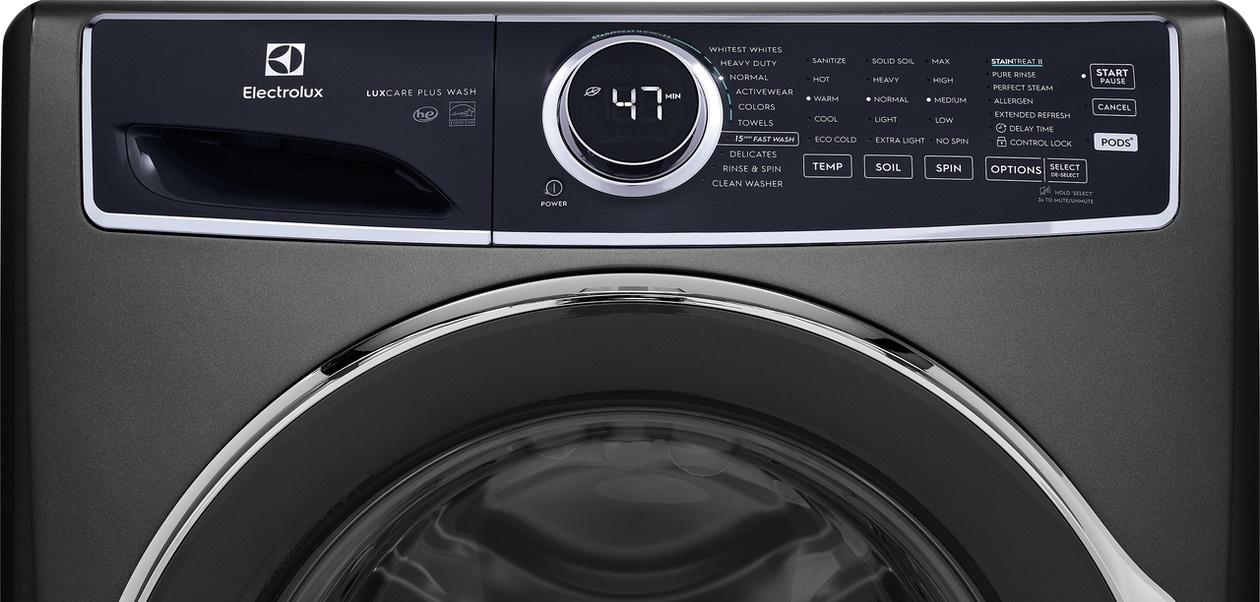 The Electrolux ELFW7537AT is a 4.5 Cu. Ft. Front Load Washer designed to deliver exceptional cleaning performance. The LuxCare® Plus Wash System ensures even distribution of detergent and additives, improved wash actions, temperature control, and smart load sensing for a thorough clean. The Perfect Steam™ technology rises from the bottom, gently lifting dirt and stains from fibers. For those in a hurry, the 15-Minute Fast Wash cycle allows you to quickly deep-clean the items you need the most. The Pure Rinse™ option removes detergent residues and fragrances, making it ideal for those with sensitive skin. Additionally, the washer features a reversible door, providing flexibility to accommodate different laundry room layouts.