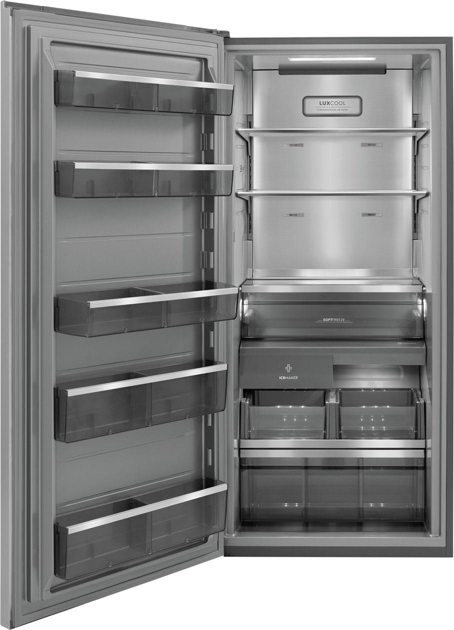 The elegant design of this Single Door Freezer elevates the occasion every time the door opens with gray bins and liner and premium LED lighting - Luxury-Glide(R) Full-Width Freezer Drawer