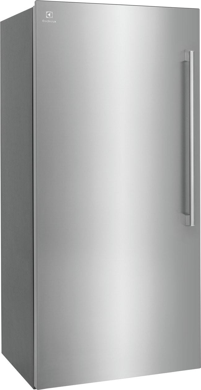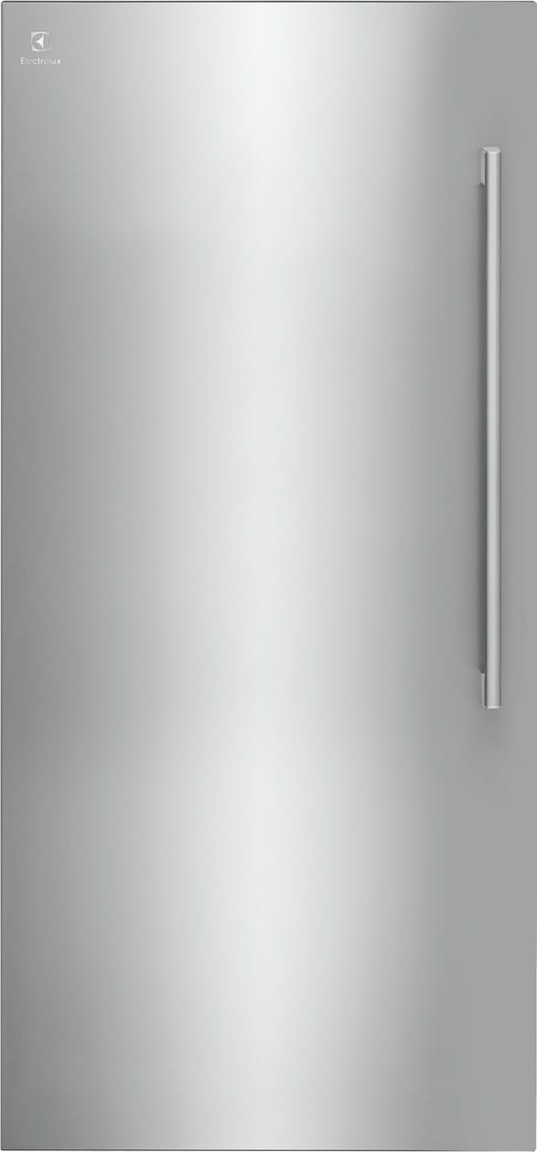 The Electrolux EI33AF80WS is a premium 33-inch single-door freezer designed to provide ample storage and advanced features for optimal food preservation. With a generous 19 cu. ft. capacity, this freezer accommodates a variety of frozen items, from bulk purchases to prepared meals. The interior boasts adjustable glass shelves with metal trim, allowing for customizable organization and easy cleaning. The soft freeze drawer is ideal for items like ice cream, keeping them at the perfect serving temperature. The integrated glide-out ice maker ensures a steady supply of ice, conveniently accessible with an easy-to-remove bin. The freezer's exterior features a modern design with touch-to-wake controls that are visible when needed and hidden from view when not in use, maintaining a clean aesthetic. Inside, LED lighting illuminates the interior, making it easy to locate items. Additional features include a door alarm to alert if the door is left open, a temperature alarm to notify of any fluctuations, and ENERGY STAR® certification for energy efficiency. The Electrolux EI33AF80WS combines style, functionality, and advanced technology to meet your freezing needs.