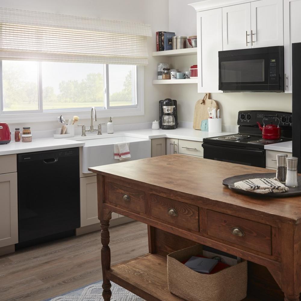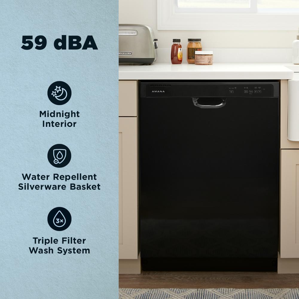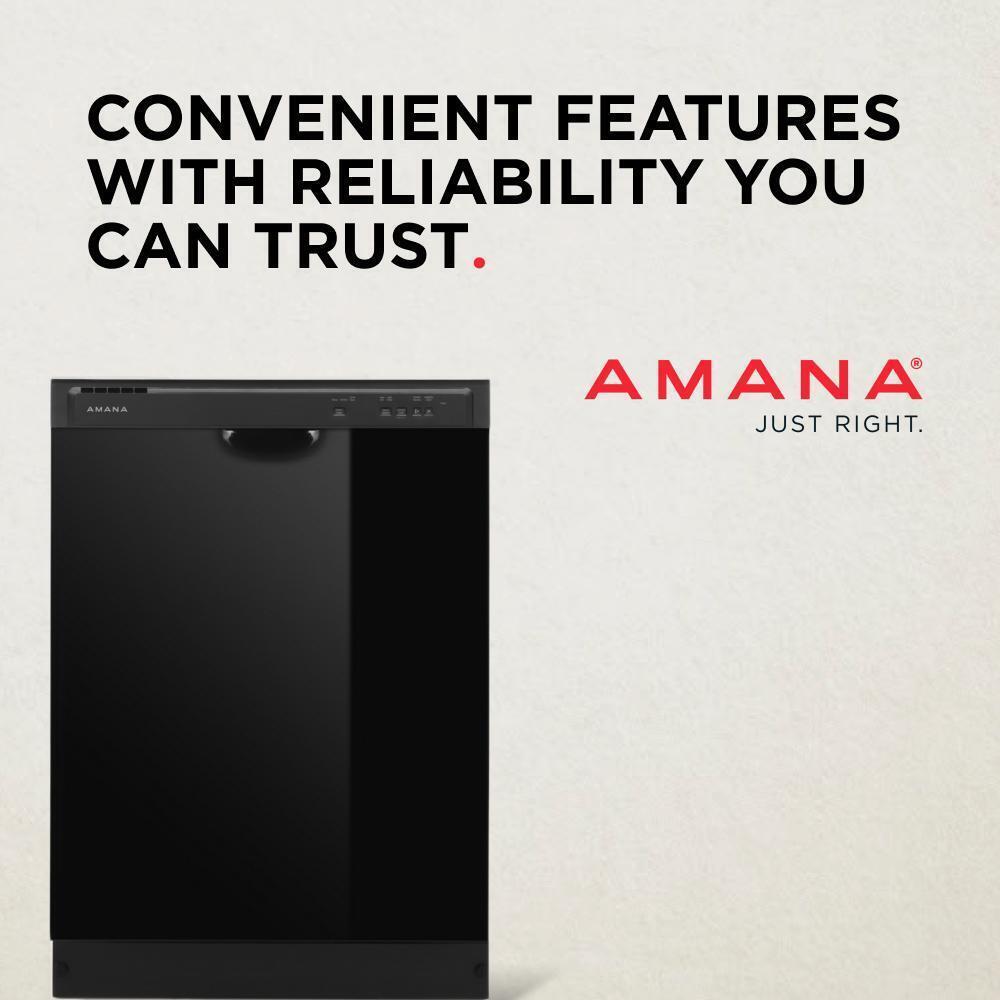 This Amana(R) Dishwasher cleans up. The Midnight Interior keeps more than your dishes looking sharp. A Water Repellant Silverware Basket dries silverware better. The Triple Filter Wash System helps you skip the pre-rinse, all while being ENERGY STAR(R) Certified to help you conserve energy and pay for less utilities.