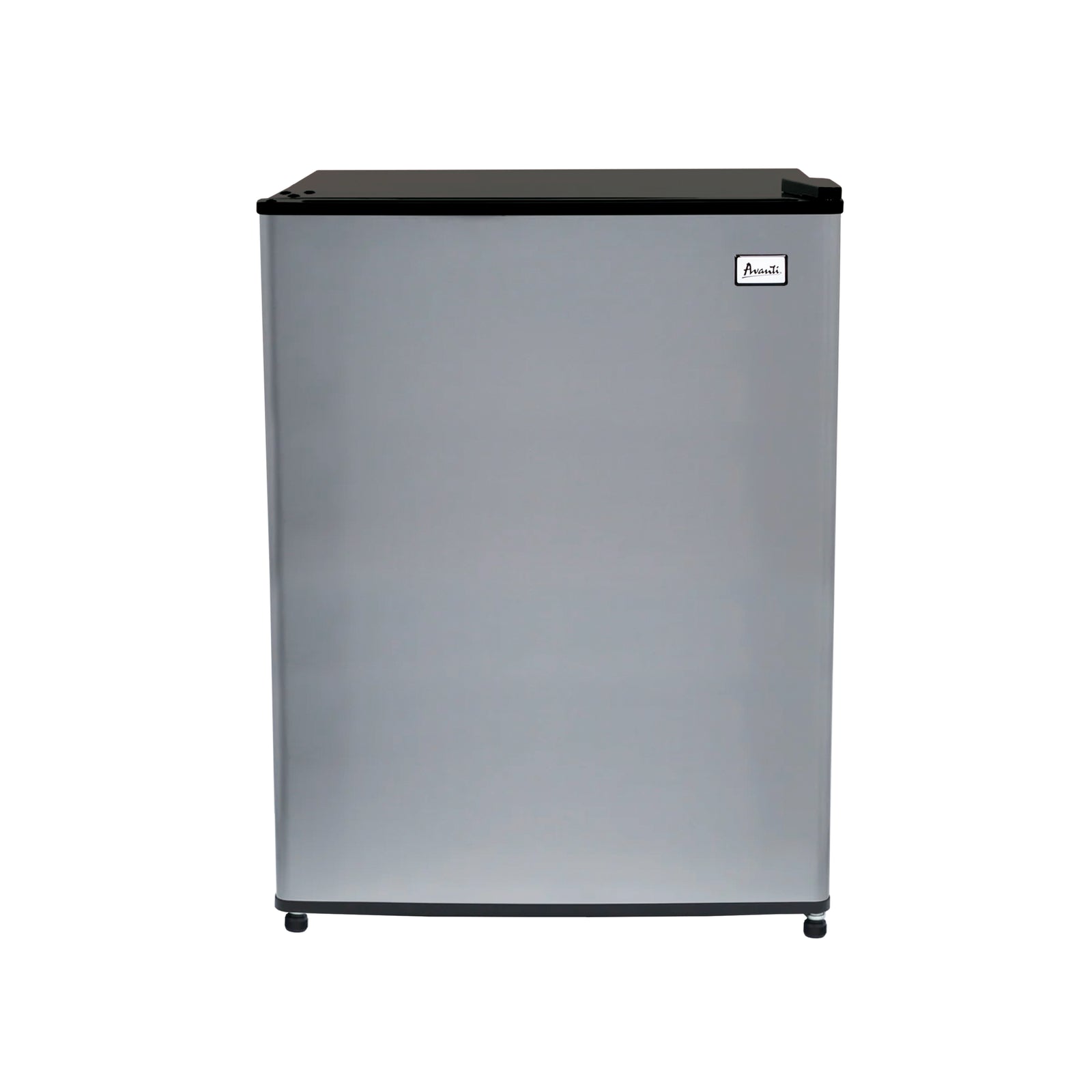 Keep your snacks and favorite beverages close by in the compact, 2.4 cubic foot black refrigerator with a stainless steel door from Avanti. The perfect mini fridge for the office, dorm, man cave, she-shed, bar, bedroom, or anywhere you need a little extra refrigerator space. The built-in door shelves can accommodate 2-liter bottles, as well as other drinks and condiments. Use the adjustable, removable shelving to arrange salads, fruits, snacks, and other foods for easy access throughout the day. This compact fridge features automatic defrost, so your foods remain fresh and cold. Select the right settings for your items with the full range temperature control.