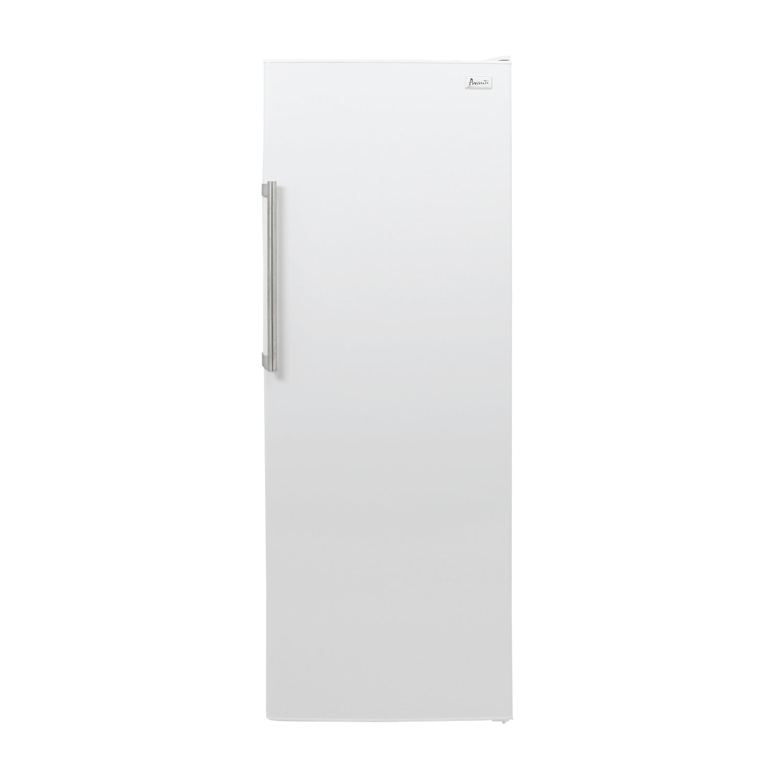 Store and organize your frozen foods with a space-saving vertical freezer. Garage ready this model is designed to perform in ambient temperatures of 0F - 110F. The Avanti 11 cu ft Vertical Freezer features a white exterior with a stainless steel handle. Its streamlined design offers plenty of storage while taking up less floor space. The upright freezer features a digital thermostat that allows you to set and maintain the desired temperature it also provides the convenience of converting to an all fridge at the flip of a switch. It also has a reversible door so you can customize it to fit your needs and easily access your stored items. Inside, it is equipped with three adjustable glass shelves with white trim to help you organize your groceries and make them easier to find. Four full-width door bins provide plenty of space to store and organize a variety of frozen foods and beverages, while a see-thru plastic crisper is ideal for storing produce. The LED interior light lets you easily see what s inside. This vertical freezer is Energy Star rated. Covered by the Avanti Two-Year Limited Warranty.