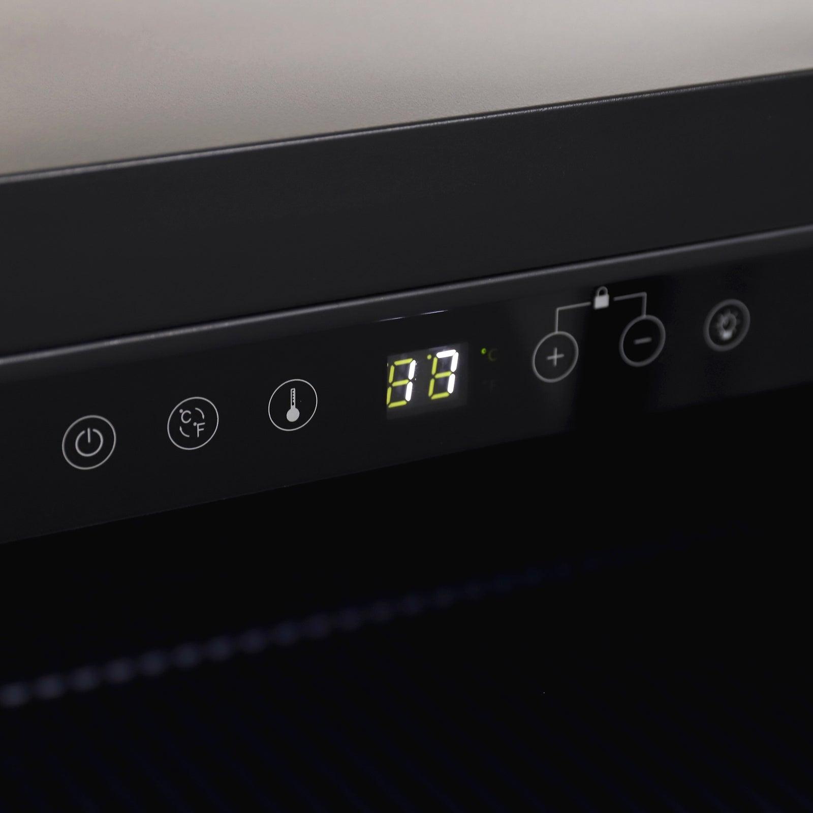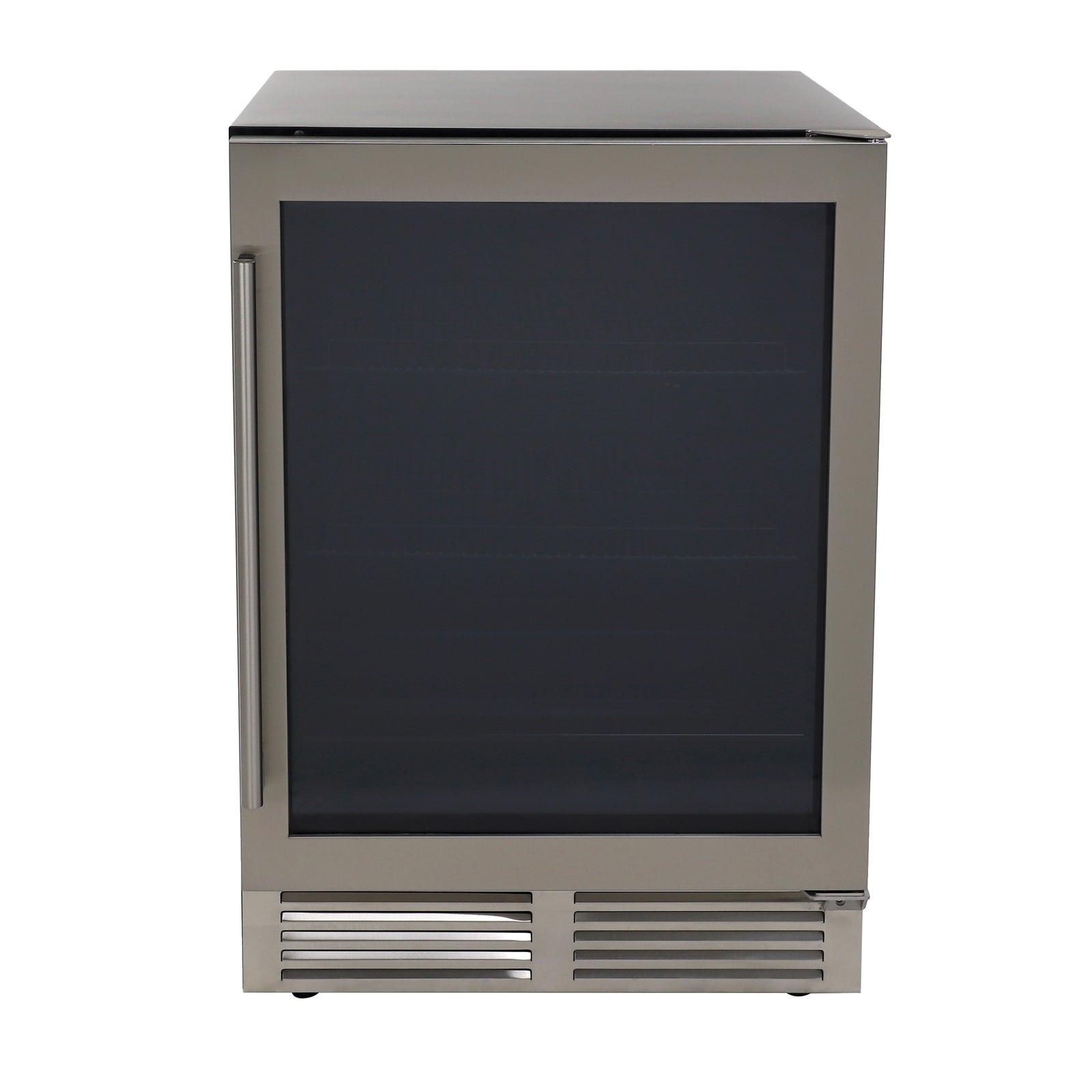 Keep your favorite drinks close by in the compact, 5.8 cubic feet beverage center with stainless steel frame and triple pane tempered glass door from Avanti's DESIGNER Series. This 24-inch wide, single-zone mini fridge is perfect for the office, dorm, man cave, she-shed, bar, bedroom or anywhere you need a little extra refrigerator cooling and storage space. Easily view your drink choices through the glass door. Use the vinyl-coated wire shelving, one glass shelf and a specially designed bottom shelf to arrange beverages for easy access throughout the day. This compact fridge holds 126, 12 oz. cans and features automatic defrost, so your drinks stay perfectly chilled. Select the proper settings at the touch of a button and monitor the temperature ((degree)C/(degree)F) with the temperature monitoring LED electronic display. Covered by the Avanti One-Year Limited Warranty.
