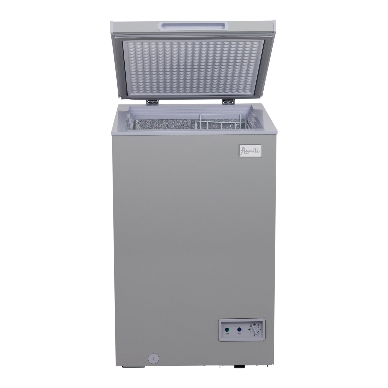Stock up and store more of your favorite frozen foods while saving time and money with the 3.5 cubic feet deep freezer from Avanti. The garage ready chest freezer can handle hot or cold temperatures while maintaining an optimal temperature inside. The lift-up lid features an integrated handle for easy access and a streamlined look. This model features a convenient, removable storage basket so you can organize and easily find your frozen foods. The power indicator light lets you know at a glance that your freezer is keeping your items frozen. The external temperature control lets you adjust the temperature without opening the lid. Manual defrost keeps your frozen food fresher and maintains a more consistent freezing temperature, while the defrost water drain conveniently removes water during defrosting. Covered by the Avanti One-Year Limited Warranty.