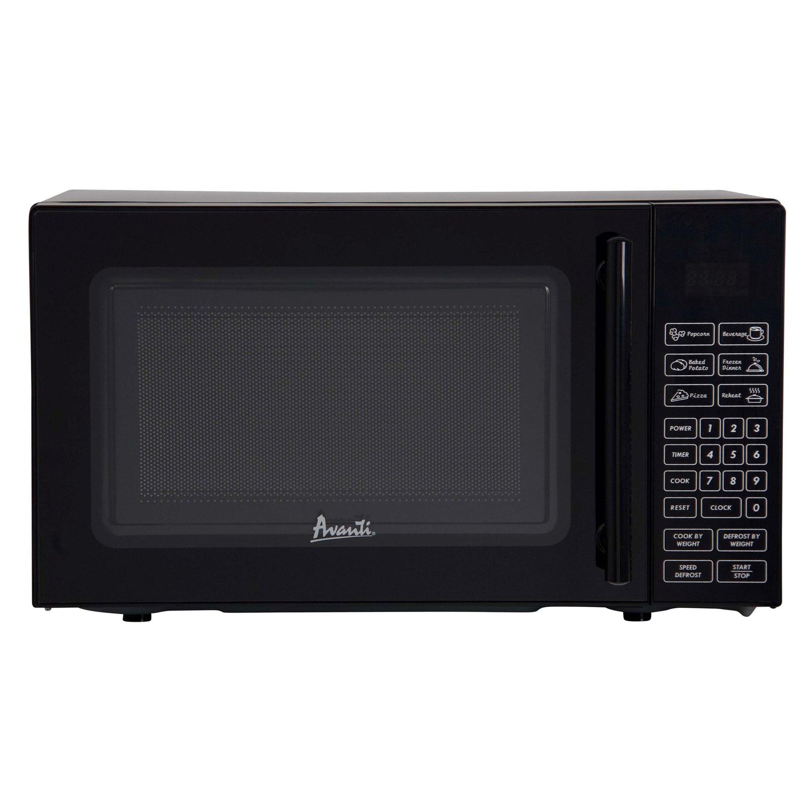 Save counter space with this 0.8 cubic foot microwave oven from Avanti. Its compact size makes it the perfect countertop microwave oven for the dorm, man cave, office, studio apartment, RV, tiny home, rental room, condo, vacation home or anywhere you need to cook food fast. This small microwave features 700 watts of cooking power and 10 power levels for heating and defrosting. Easily cook your favorites with the touch of a button with six one-touch, pre-set cooking modes for potatoes, popcorn, pizza and more. A turntable with a glass tray helps ensure your food cooks evenly. Maximize your counter space with this compact microwave oven. Covered by the Avanti One-Year Limited Warranty.