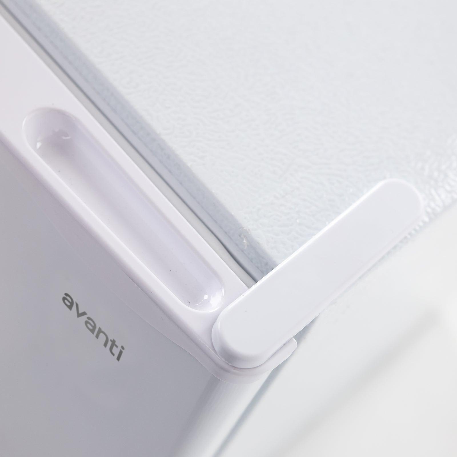 Keep your snacks and favorite beverages close by in the compact, 1.6 cubic foot refrigerator from Avanti. The perfect mini fridge for the office, dorm, man cave, she-shed, bar, bedroom, or anywhere you need a little extra refrigerator space. The built-in door shelves can accommodate 2-liter bottles as well as other drinks and condiments. Use the removable wire shelving to arrange salads, fruits, snacks, and other foods for easy access throughout the day. This compact fridge features manual defrost so your food remains fresh and cold. Select the right settings for your items with the full range temperature control.