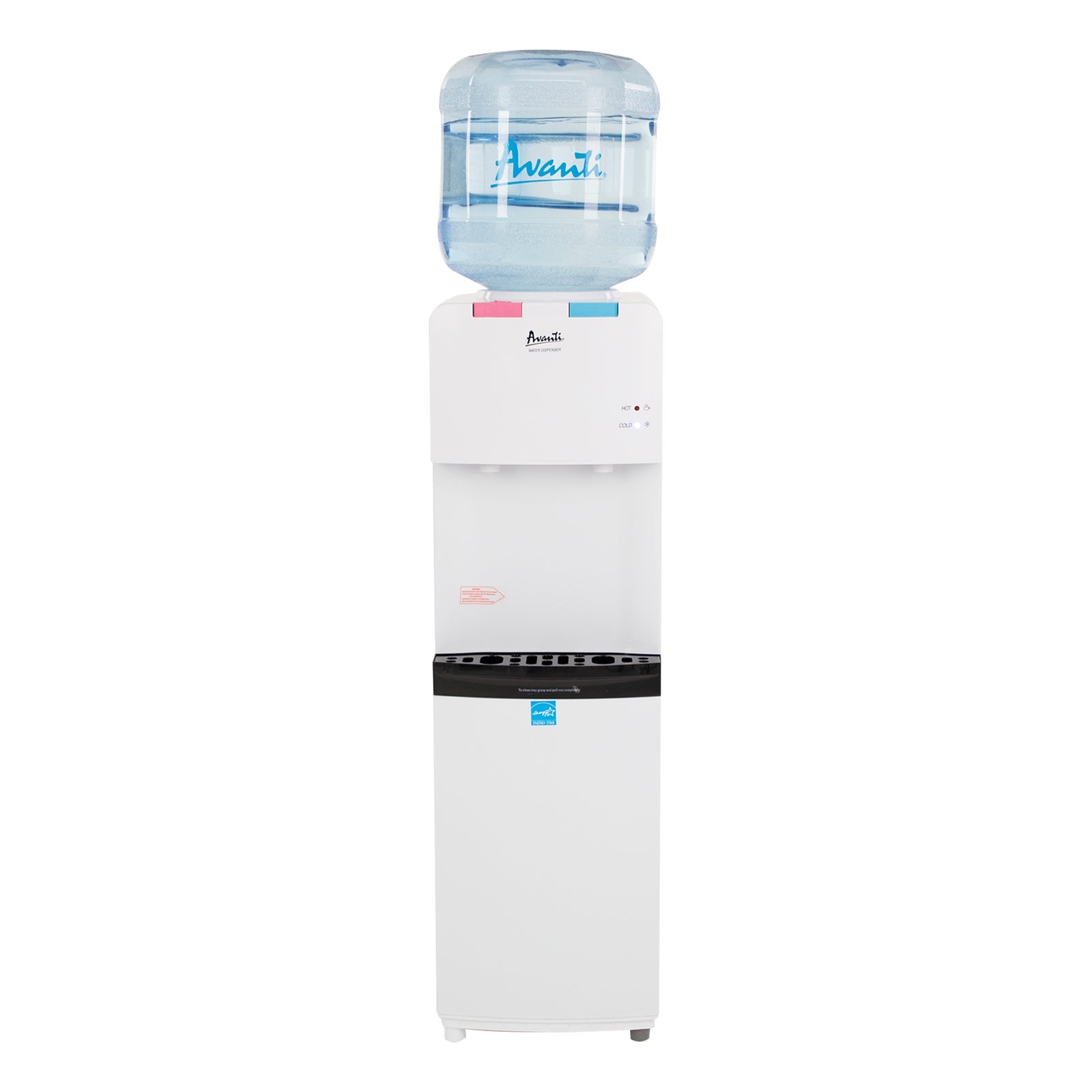 Save time and money with a dual tap water cooler from Avanti. The perfect water cooler for the office, kitchen, worksite, warehouse, gym, or anywhere you want to add a hydration station. Enjoy instant access to a refreshing glass of cold drinking water or easily prepare your favorite hot beverage, soup, or oatmeal from the dual faucet dispenser. This top-loading water dispenser accommodates 3 or 5-gallon water bottles, helping reduce waste from single-serve bottles.