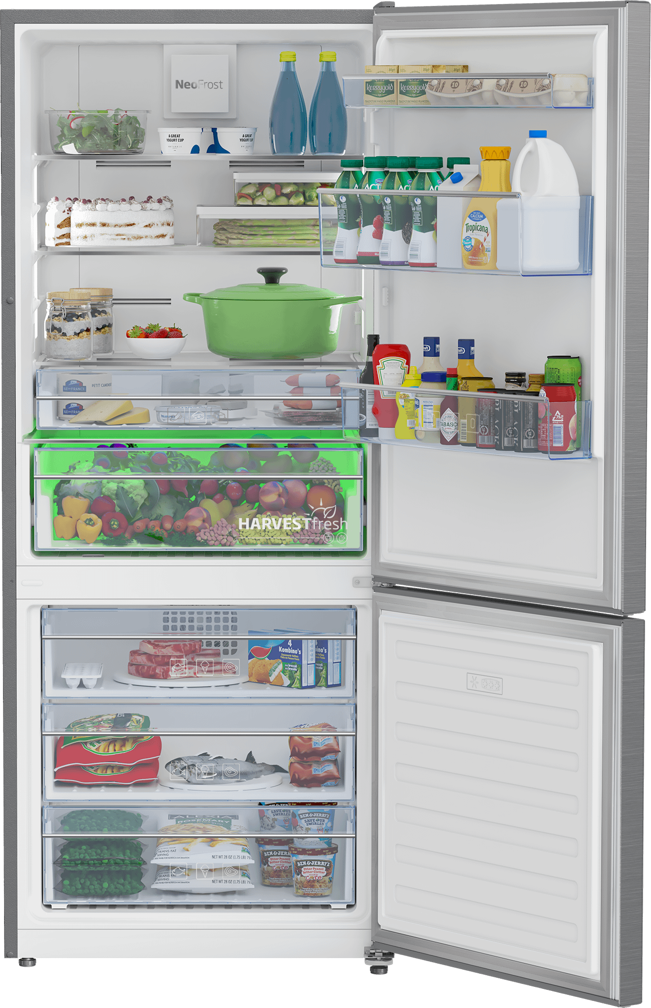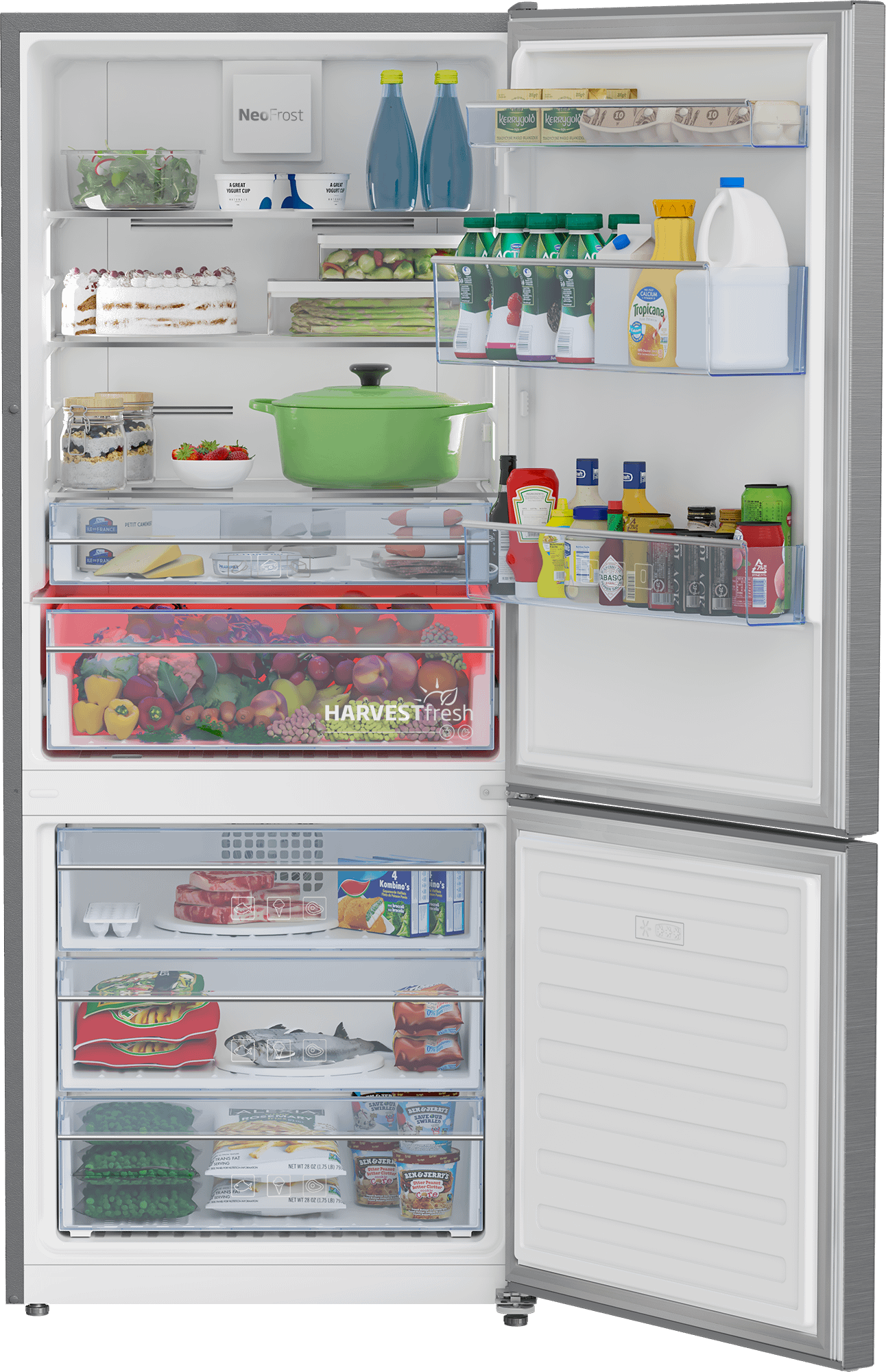 Beko's newest refrigeration technology, HarvestFresh(TM), preserves vitamins in fruits and vegetables for longer in a unique crisper drawer. HarvestFresh 3-color technology simulates the 24-hour daily sun cycle as it rises (blue), reaches peak (green), and sets into nighttime (red). This preserves vitamins in fruits and vegetables for longer* so you can enjoy a healthier lifestyle with more nutritious meals than ever. With precise humidity and temperature controls, your produce will remain fresh for up to 30 days.**