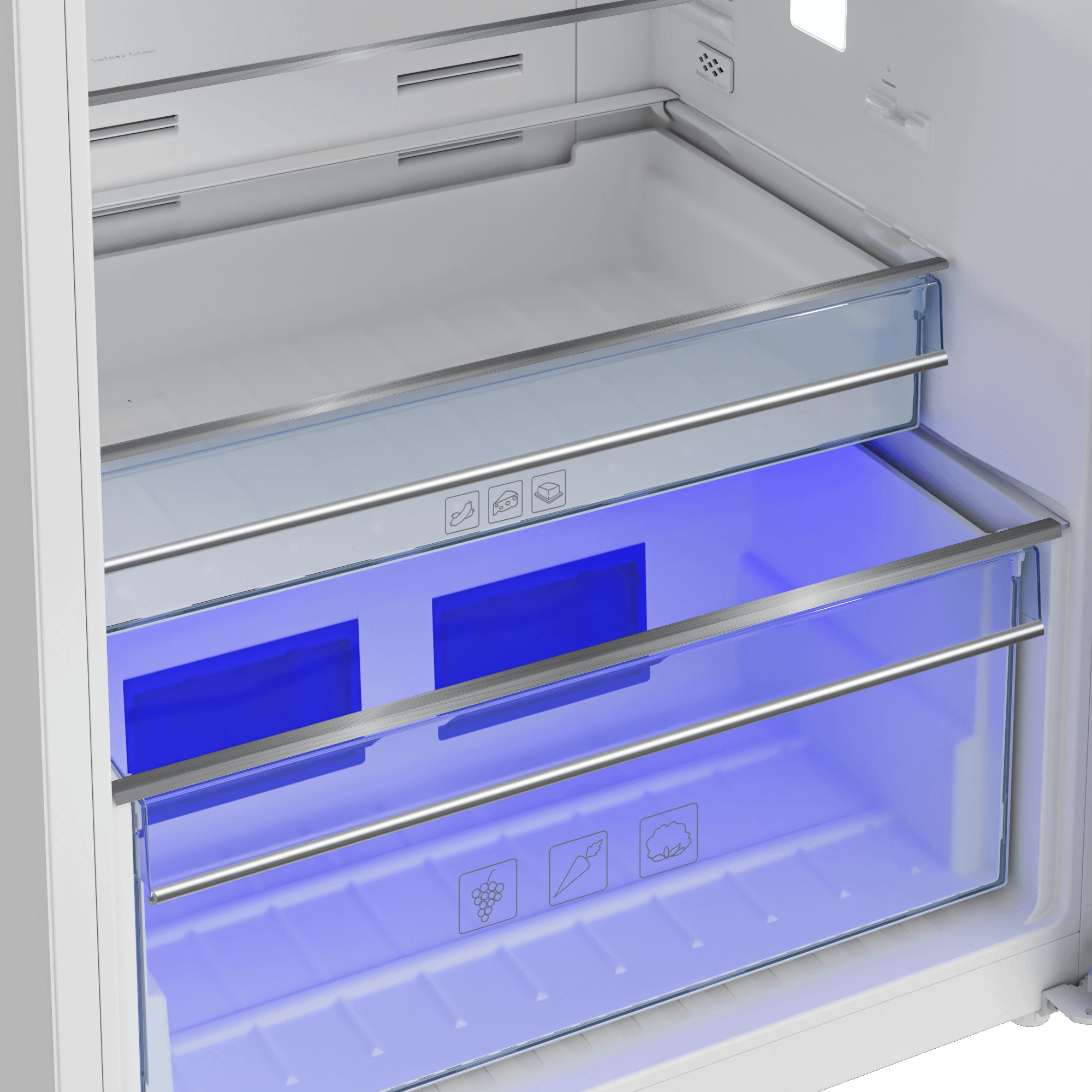 ActiveFreshBlueLight(TM) uses blue LED lights in the crisper drawer to continue the process of photosynthesis, protecting the Vitamin C content of your fruit and vegetables so they retain their nutritional benefits, stay fresher for longer and taste better too.
