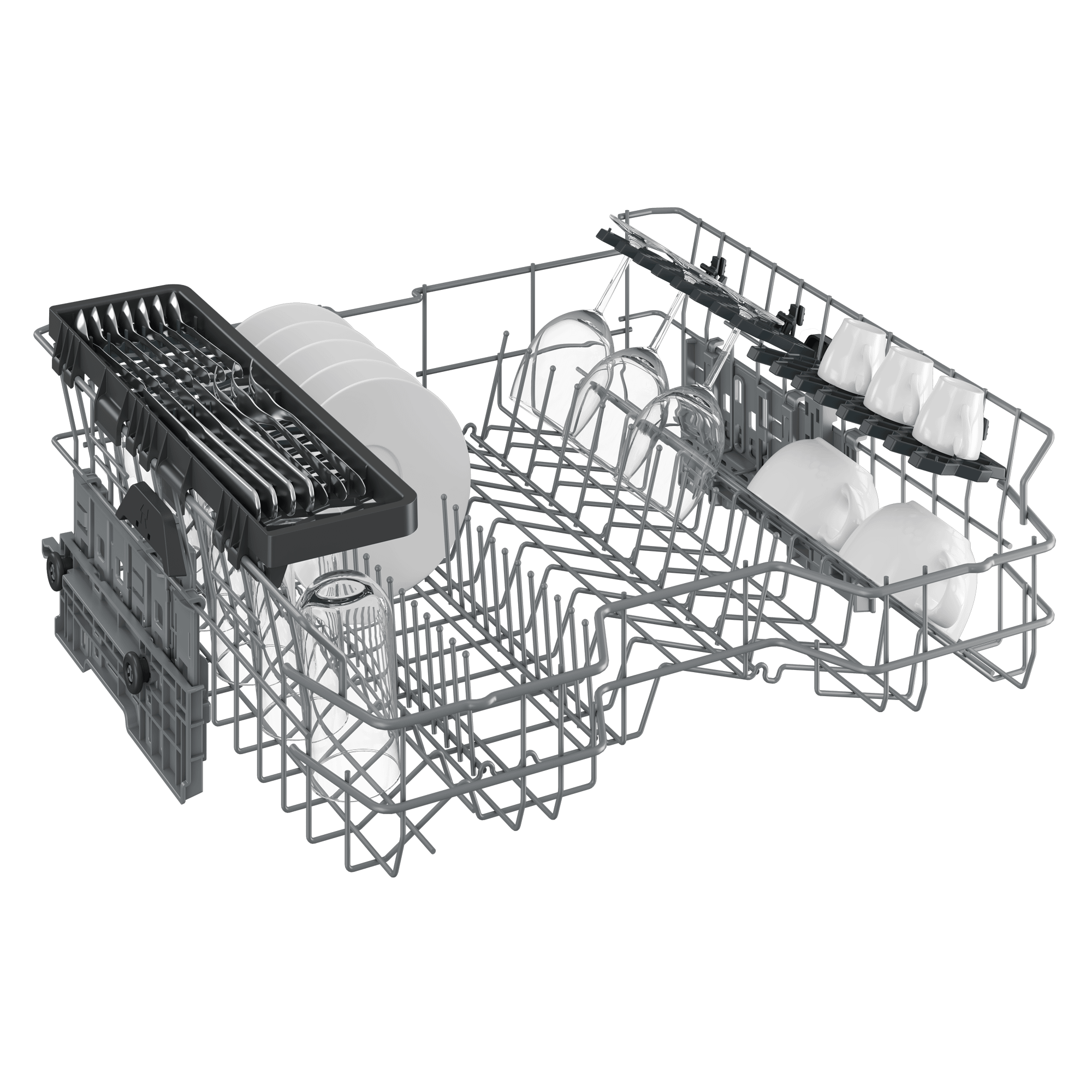 Raise the height of the upper basket to wash large plates below or lower it to accommodate tall glasses.