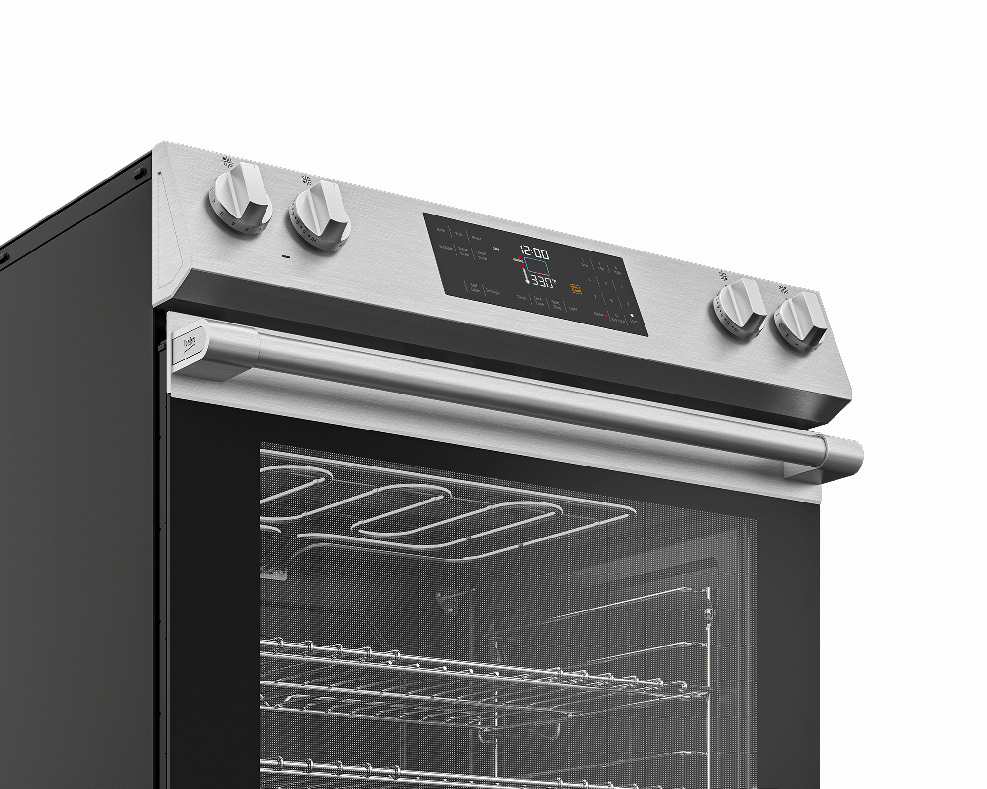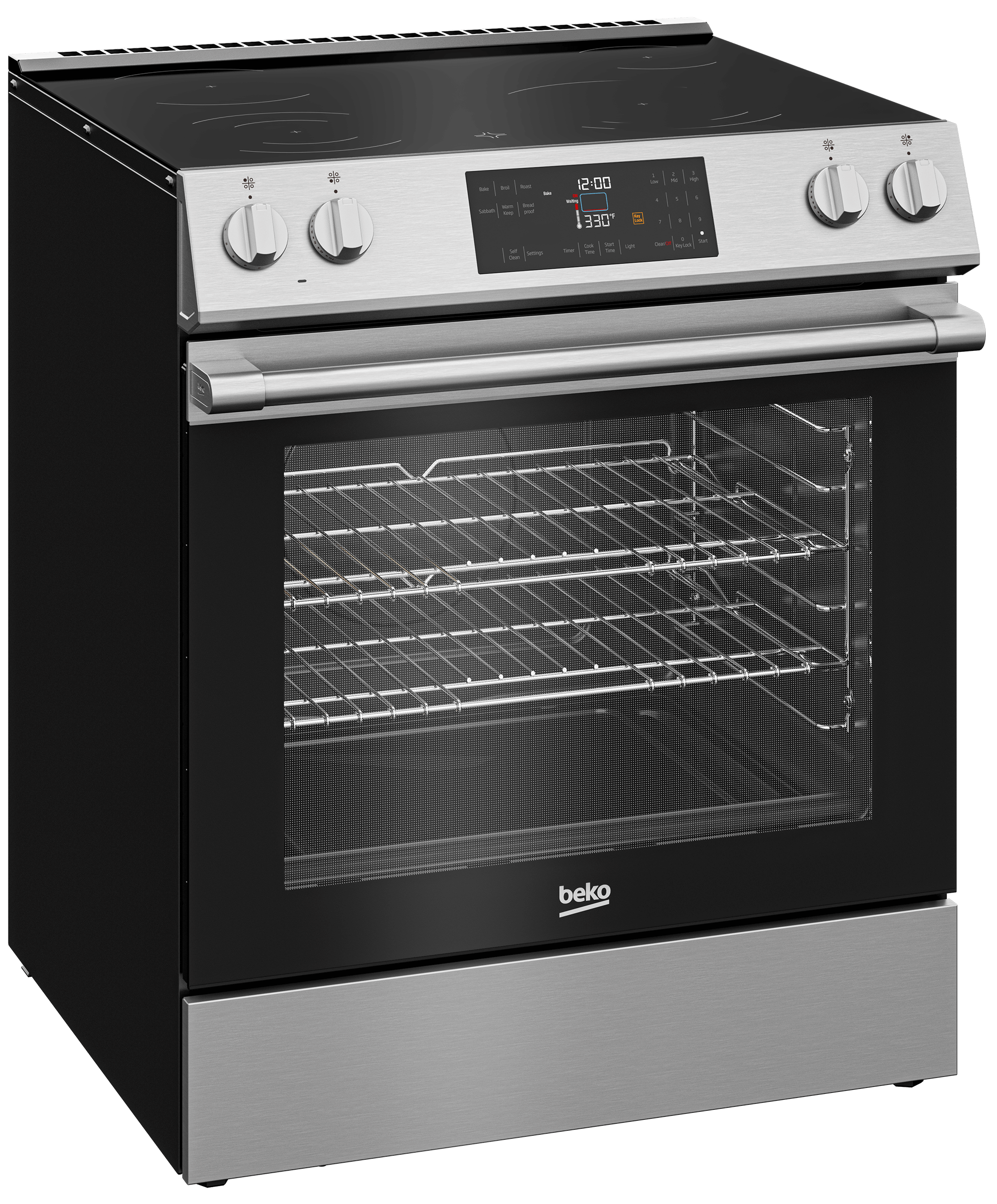 Elevate your cooking experience with a tilted control panel. Beko slide-in ranges come with a tilted control panel and display which offers an ergonomic design that makes it easy to adjust and view cooking times.