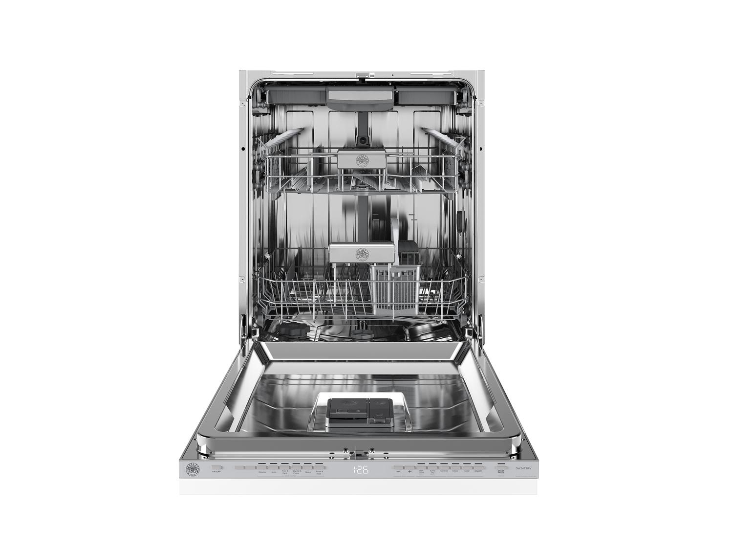 The Bertazzoni DW24S3IPV dishwasher combines Italian craftsmanship with advanced cleaning technology. Its panel-ready design allows for seamless integration with custom kitchen cabinetry, providing a cohesive and elegant kitchen aesthetic. The stainless steel standard tub accommodates up to 15 place settings, making it ideal for families and entertaining. The dishwasher includes three racks: a cutlery tray, a convenient height-adjustable middle rack that can be loaded on two levels, and a lower rack with folding tines, offering flexible loading options for various dish sizes and shapes.
