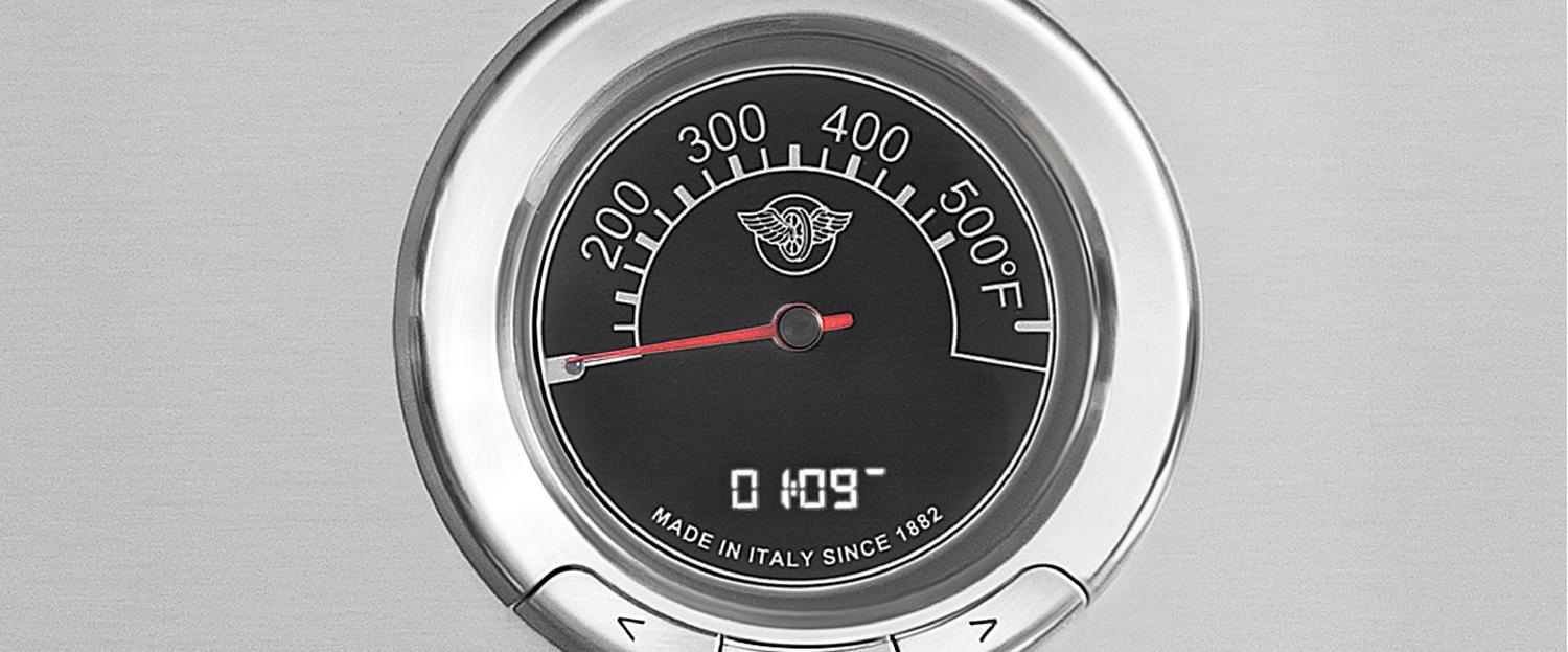 The dual convection electric oven provides precise and even heat distribution for superior baking, roasting, and broiling. The large-capacity oven features multiple rack positions to accommodate large roasts and multi-course meals. The soft-close oven doors prevent slamming, enhancing the premium cooking experience, while the digital temperature display allows for precise adjustments.