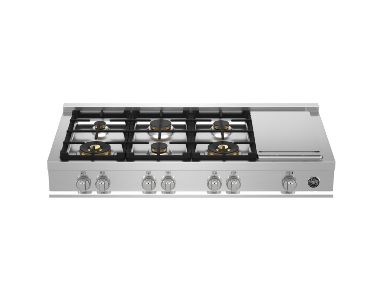 The Bertazzoni MAST486GRTBXT Master Series 48-inch freestanding gas range offers exceptional performance and Italian craftsmanship in a luxurious design. The gas cooktop features six sealed burners, including a dual-ring burner for rapid boiling and powerful searing, as well as a dedicated simmer burner for delicate tasks. The integrated griddle provides additional cooking options, perfect for preparing breakfast items, sandwiches, or stir-fried dishes.